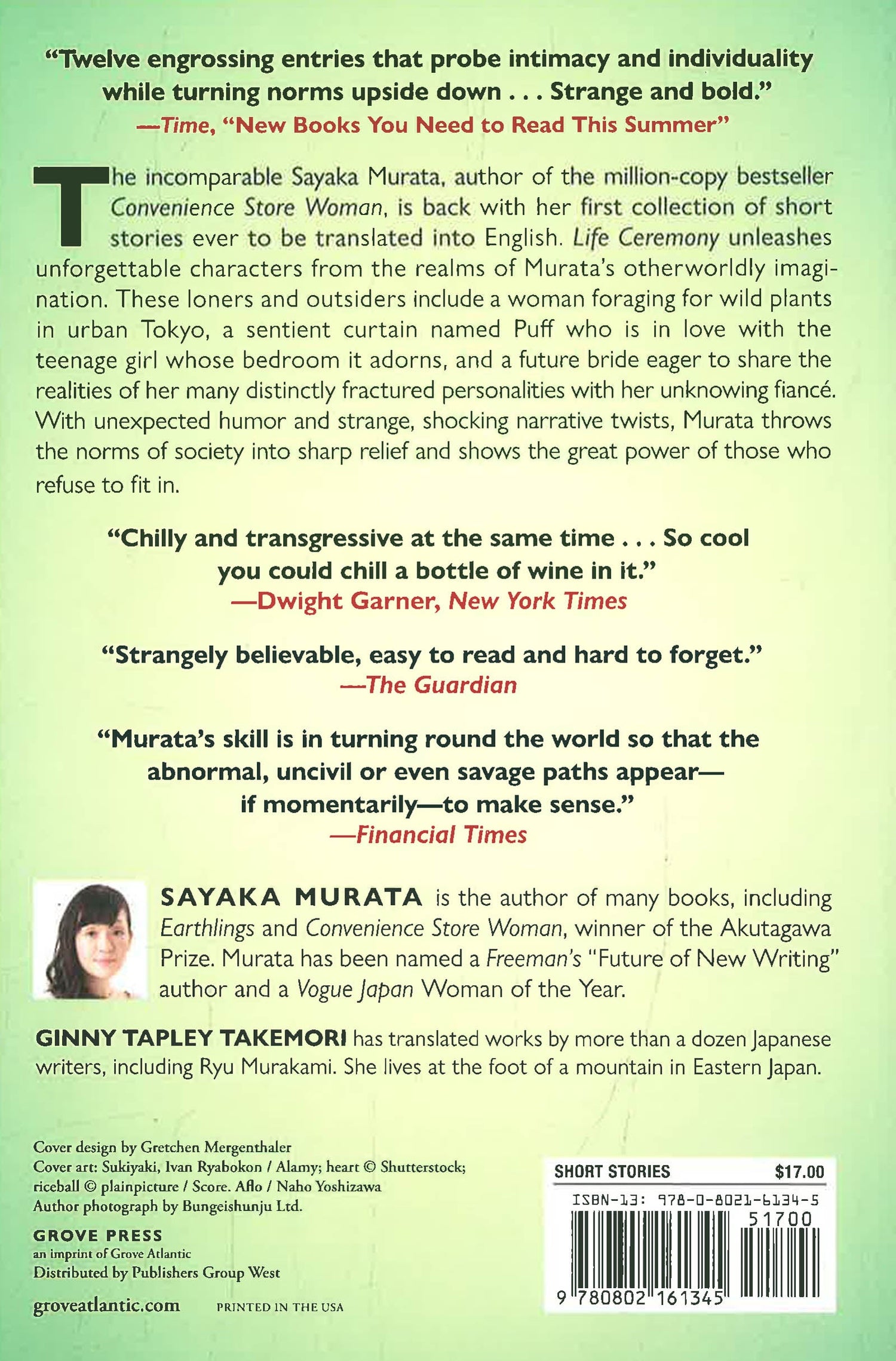 With Life Ceremony, the incomparable Sayaka Murata is back with her first collection of short stories ever to be translated into English. In Japan, Murata is particularly admired for her short stories, which are sometimes sweet, sometimes shocking, and always imbued with an otherworldly imagination and uncanniness.