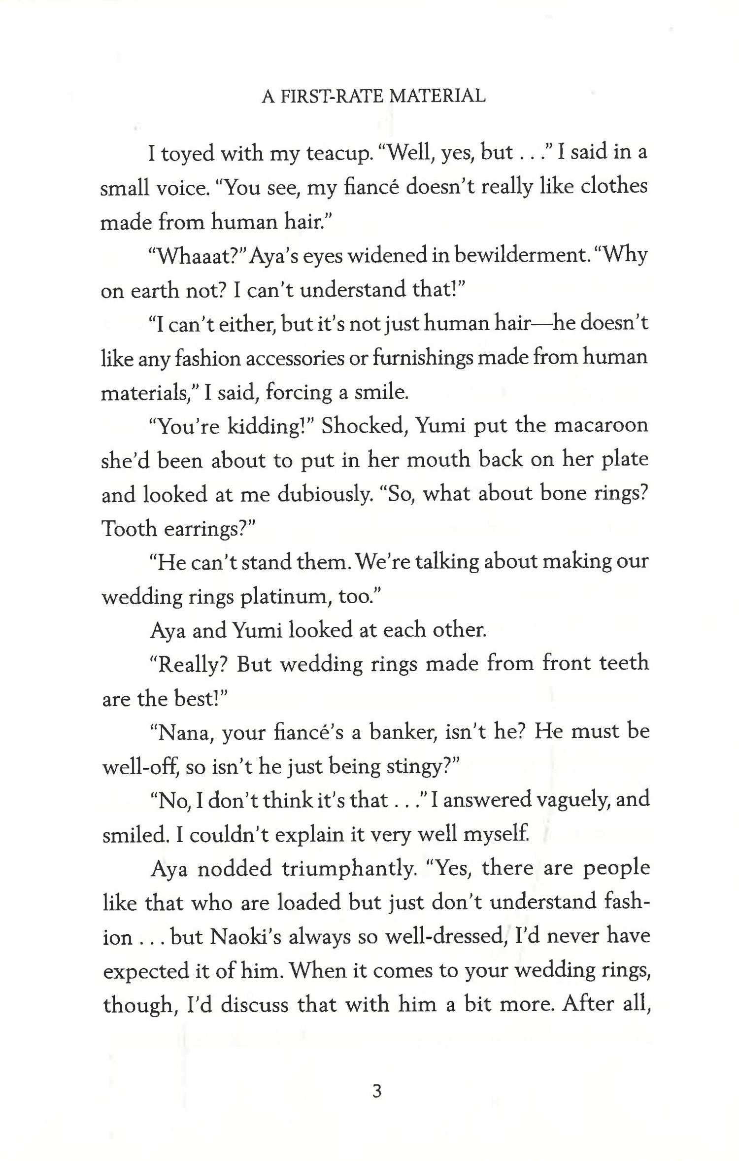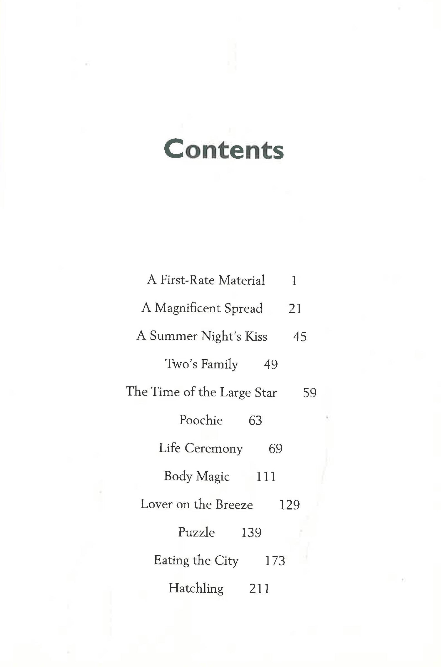 In these twelve stories, Murata mixes an unusual cocktail of humor and horror to portray both the loners and outcasts as well as turning the norms and traditions of society on their head to better question them. Whether the stories take place in modern-day Japan, the future, or an alternate reality is left to the reader's interpretation, as the characters often seem strange in their normality in a frighteningly abnormal world. In "A First-Rate Material," Nana and Naoki are happily engaged, but Naoki can't stand the conventional use of deceased people's bodies for clothing, accessories, and furniture, and a disagreement around this threatens to derail their perfect wedding day. "Lovers on the Breeze" is told from the perspective of a curtain in a child's bedroom that jealously watches the young girl Naoko as she has her first kiss with a boy from her class and does its best to stop her. "Eating the City" explores the strange norms around food and foraging, while "Hatchling" closes the collection with an extraordinary depiction of the fractured personality of someone who tries too hard to fit in.