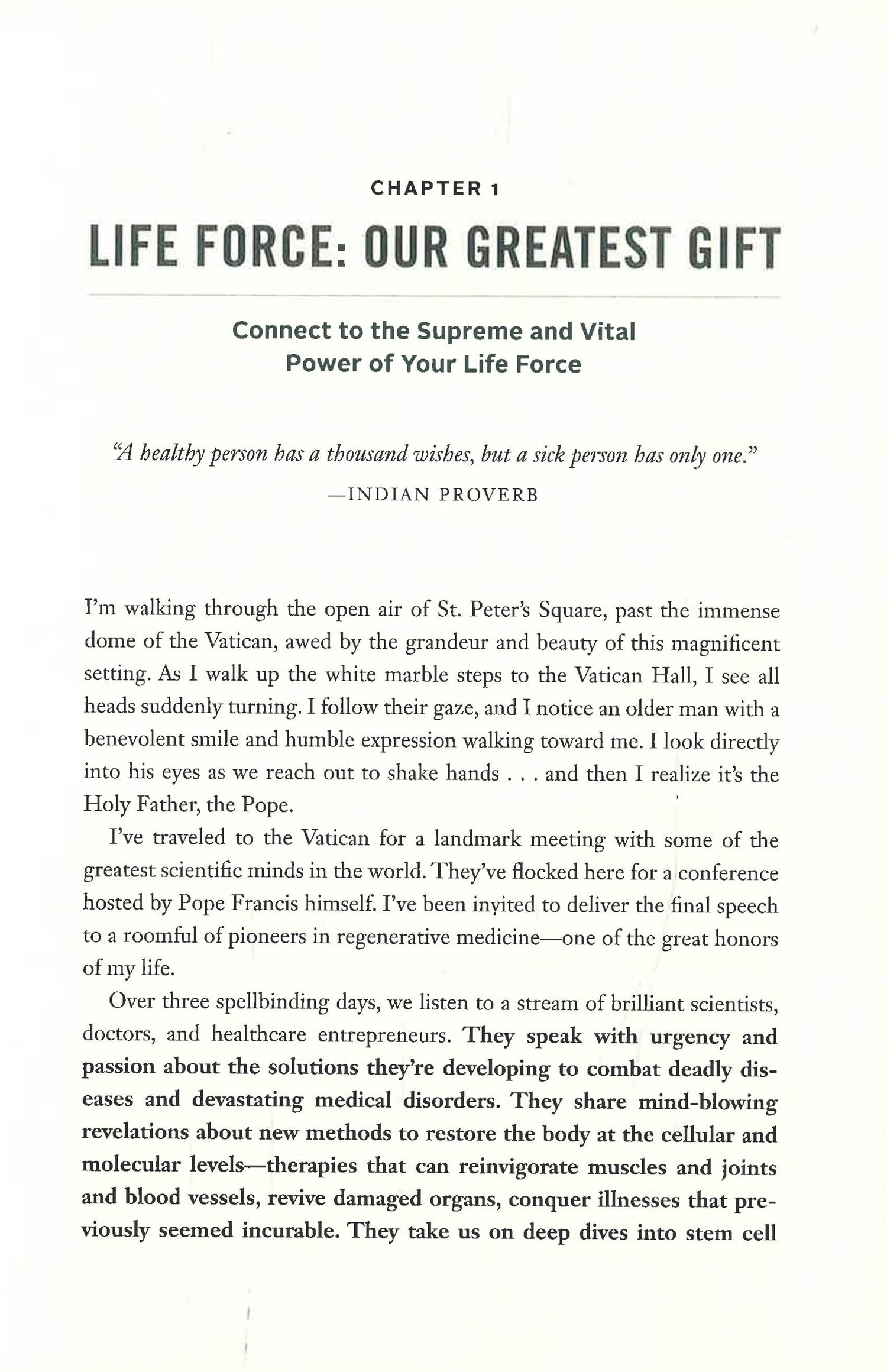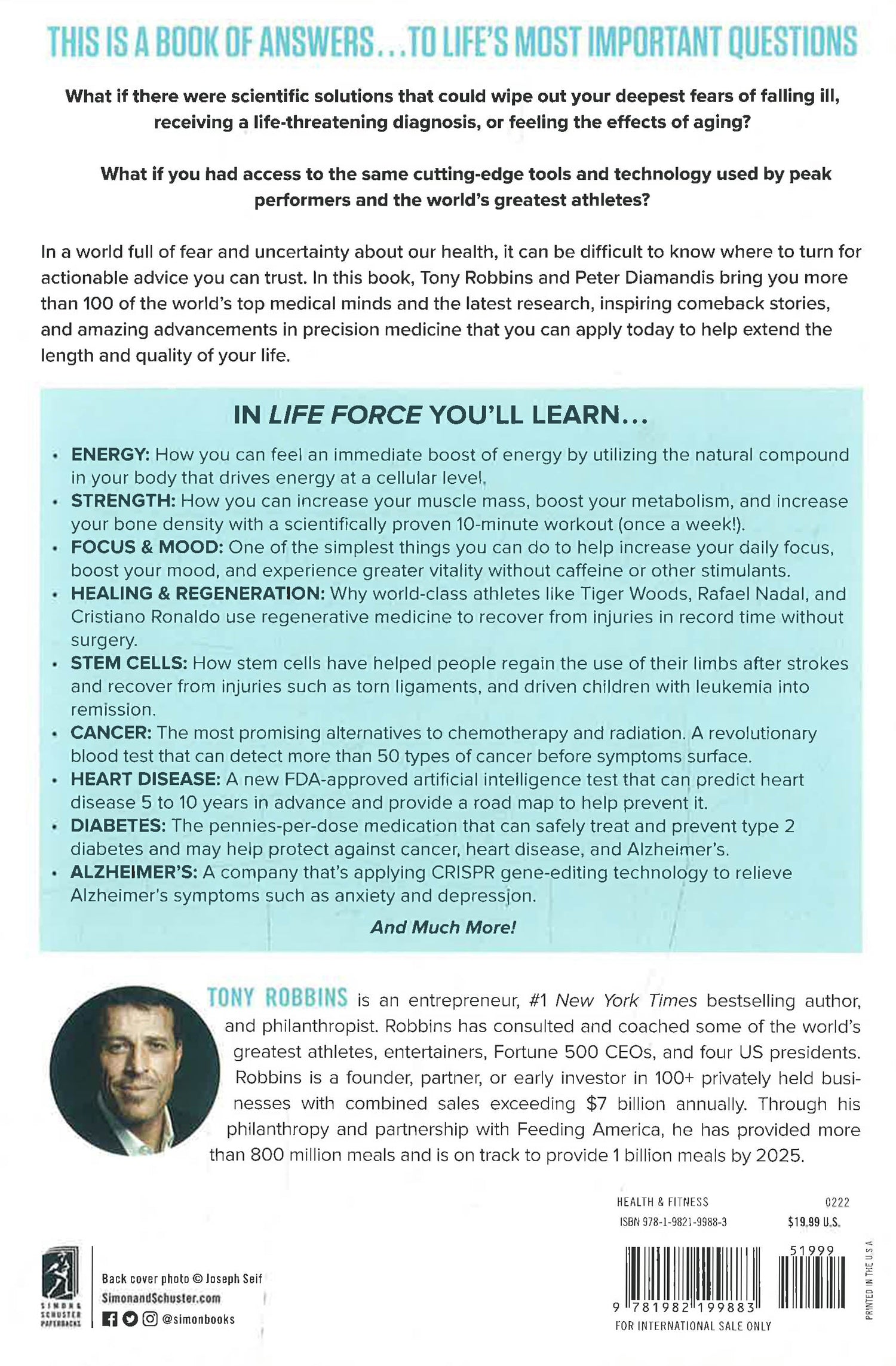 Life Force will show you how you can wake up every day with increased energy, a more bulletproof immune system, and the know-how to help turn back your biological clock. This is a book for everyone, from peak performance athletes, to the average person who wants to increase their energy and strength, to those looking for healing. Life Force provides answers that can transform and even save your life, or that of someone you love. Transform your life or the life of someone you love with Life Force—the newest breakthroughs in health technology to help maximize your energy and strength, prevent disease, and extend your health span—from Tony Robbins, author of the #1 New York Times bestseller Money: Master the Game.