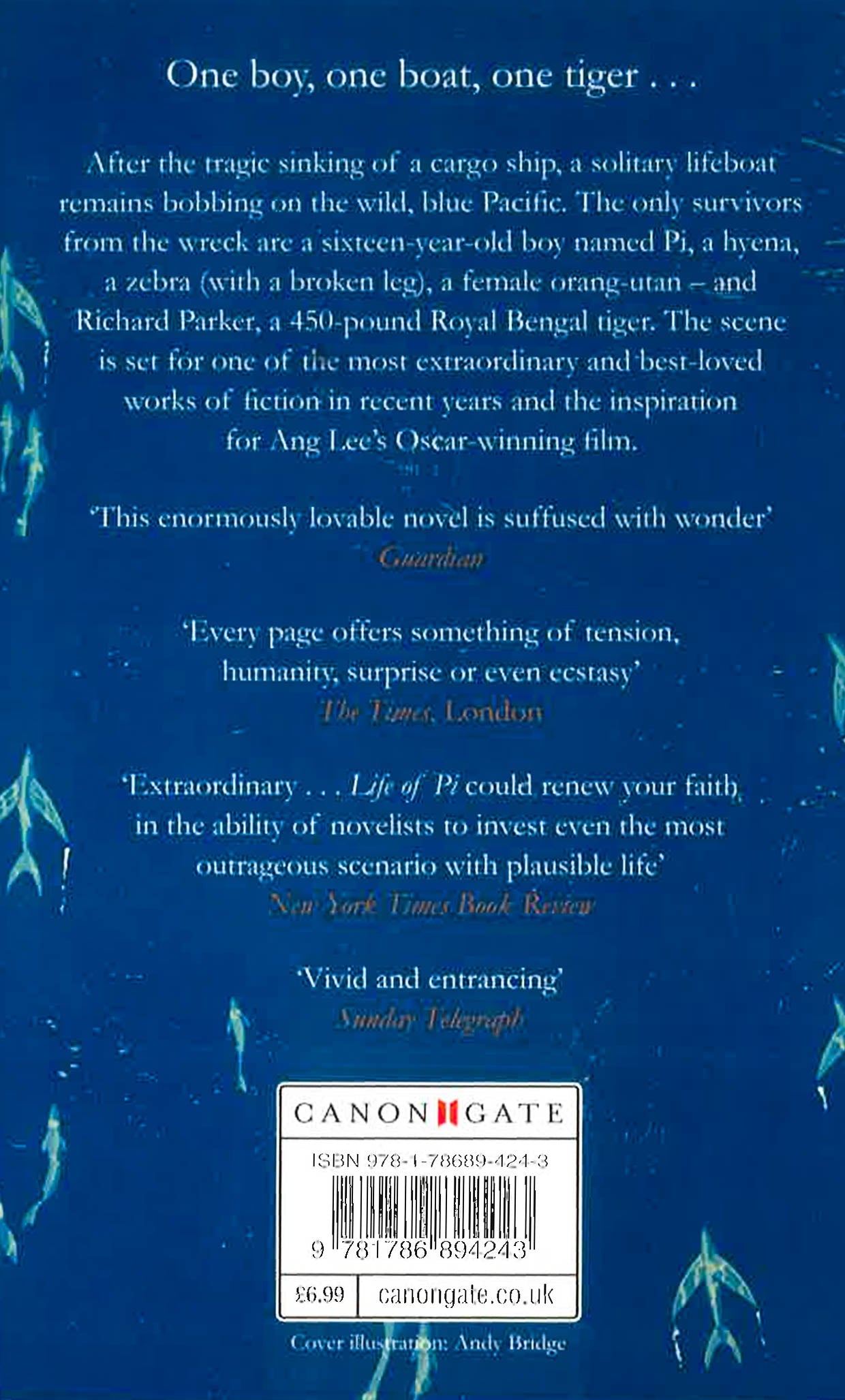 One boy, one boat, one tiger . . .After the tragic sinking of a cargo ship, a solitary lifeboat remains bobbing on the wild, blue Pacific. The only survivors from the wreck are a sixteen year-old boy named Pi, a hyena, a zebra (with a broken leg), a female orang-utan - and a 450-pound Royal Bengal tiger. The scene is set for one of the most extraordinary and best-loved works of fiction in recent years.