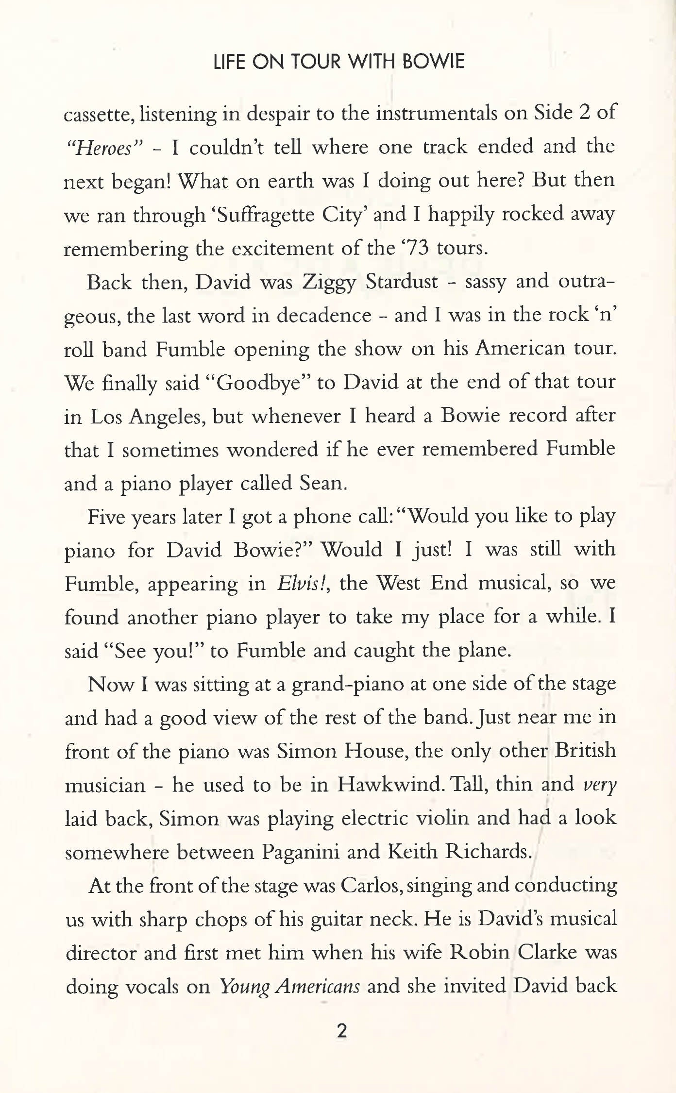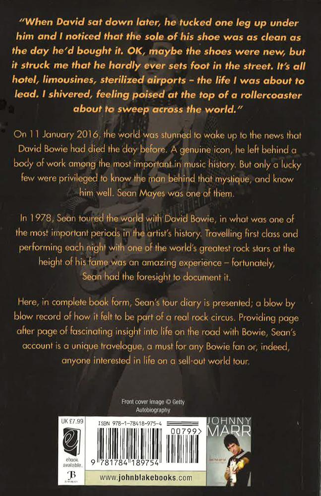 "When David sat down later, he tucked one leg up under him and I noticed that the sole of his shoe was as clean as the day he'd bought it. OK, maybe the shoes were new, but it struck me that he hardly ever sets foot in the street. It's all hotel, limousines, sterilized airports - the life I was about to lead. I shivered, feeling poised at the top of a rollercoaster about to sweep across the world." On 11 January 2016, the world was stunned to wake up to the news that David Bowie had died the day before. A genuine icon, he left behind a body of work among the most important in music history. But only a lucky few were privileged to know the man behind that mystique, and know him well. Sean Mayes was one of them. In 1978, Sean toured the world with David Bowie, in what was one of the most important periods in the artist's history. Travelling first class and performing each night with one of the world's greatest rock stars at the height of his fame was an amazing experience - fortunately, Sean had the foresight to document it. Here, in complete book form, Sean's tour diary is presented; a blow by blow record of how it felt to be part of a real rock circus. Providing page after page of fascinating insight into life on the road with Bowie, Sean's account is a unique travelogue, a must for any Bowie fan or, indeed, anyone interested in life on a sell-out world tour.
