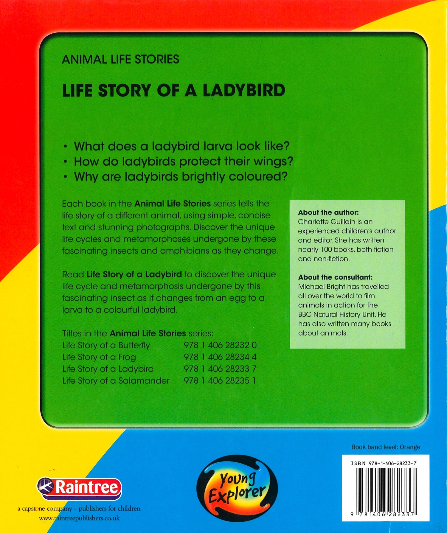 This book tells the life story of a ladybird, using simple, concise text and stunning photographs. Read it to discover the unique life cycle and metamorphosis undergone by this fascinating insect as it changes from an egg to a larva to a colourful ladybird.This book tells the life story of a ladybird, using simple, concise text and stunning photographs. Read it to discover the unique life cycle and metamorphosis undergone by this fascinating insect as it changes from an egg to a larva to a colourful ladybird.Charlotte Guillain worked as a bookseller, an English teacher and an editor before becoming an author. She has written more than 100 books, both fiction and non-fiction. She always wanted to be a writer and her top tip is to read as much as you can.
