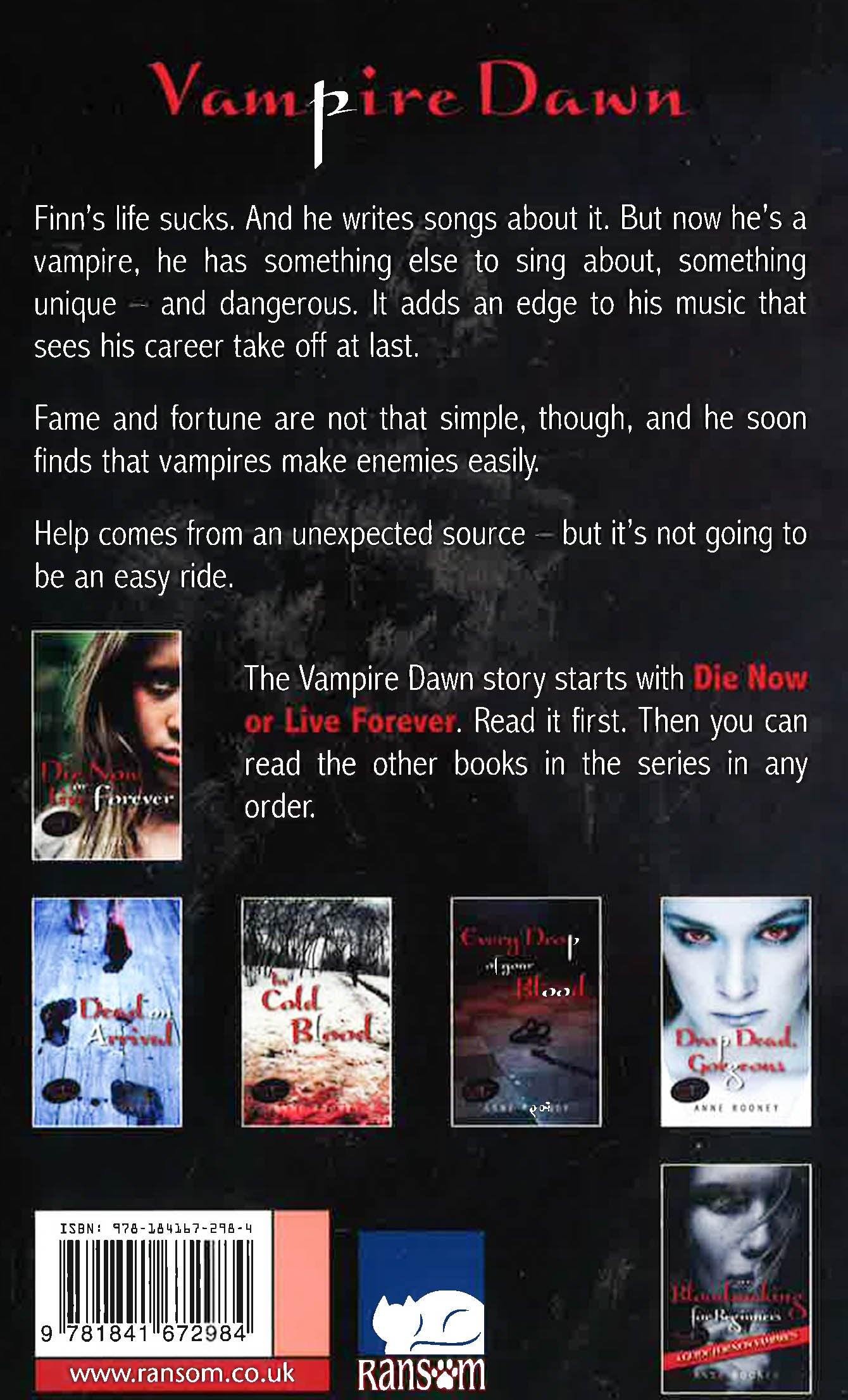 Finn's life sucks. And he writes songs about it. But now he's a vampire, he has something else to sing about, something unique - and dangerous. It adds an edge to his music that sees his career take off at last. Fame and fortune are not that simple, though, and he soon finds that vampires make enemies easily. Edgy and exciting, this book is a fantastic addition to the vampire genre. Part of the clever Vampire Dawn series, this story intertwines fascinating historical (vampire) figures with the contemporary world a group of smartphones and the internet. After reading the first book, Die Now or Live Forever, the books can be read in any order. This book is ideal for reluctant readers who want to delve into the world of vampires.