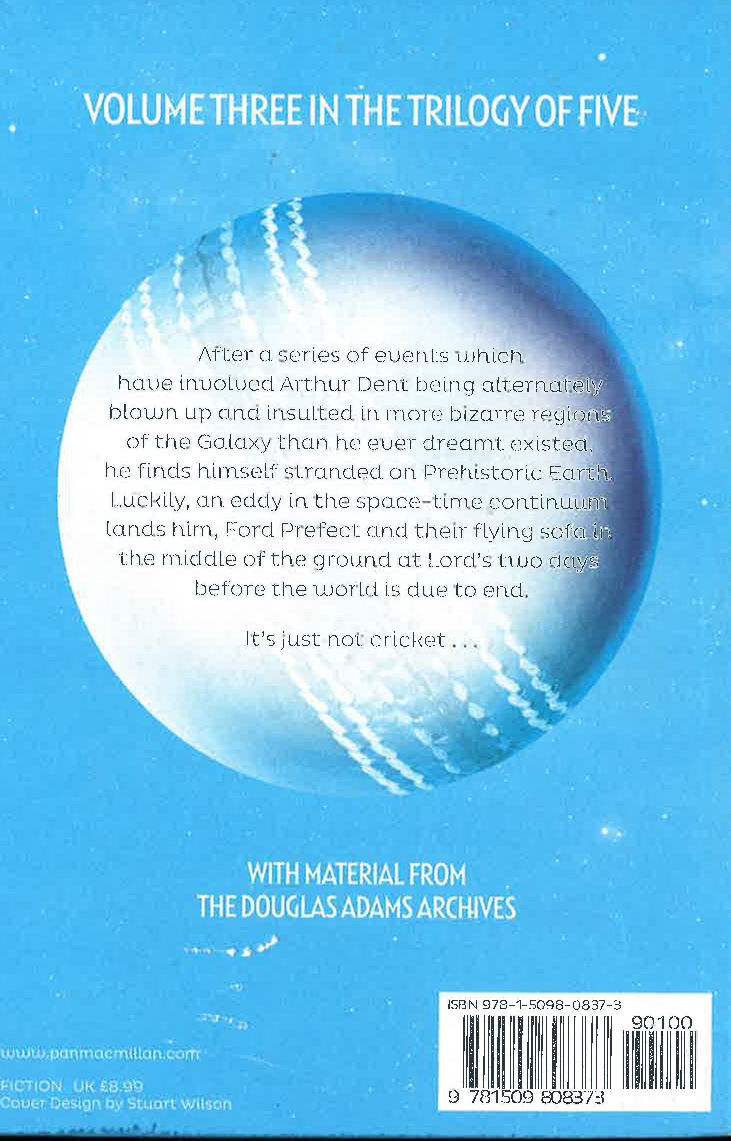Part three of the Hitchhiker's Guide to the Galaxy trilogy of five. Featuring additional material from the Adams archives, and an introduction from Simon Brett, producer of the original radio broadcast. In Life, the Universe and Everything, the third title in Douglas Adams' blockbusting sci-fi comedy series, The Hitchhiker's Guide to the Galaxy, Arthur Dent finds himself enlisted to prevent a galactic war.This edition, with a shimmery cover, includes exclusive bonus material from the Douglas Adams archives, and an introduction by Simon Brett, producer of the original radio broadcast.Following a number of stunning catastrophes, which have involved him being alternately blown up and insulted in ever stranger regions of the Galaxy, Arthur Dent is surprised to find himself living in a cave on prehistoric Earth. However, just as he thinks that things cannot get possibly worse, they suddenly do. An eddy in the space-time continuum lands him, Ford Prefect, and their flying sofa in the middle of the cricket ground at Lord's, just two days before the world is due to be destroyed by the Vogons. Escaping the end of the world for a second time, Arthur, Ford, and their old friend Slartibartfast embark (reluctantly) on a mission to save the whole galaxy from fanatical robots. Not bad for a man in his dressing gown . . .Follow Arthur Dent's galactic (mis)adventures in the rest of the trilogy with five parts: So Long, and Thanks for All the Fish, and Mostly Harmless.