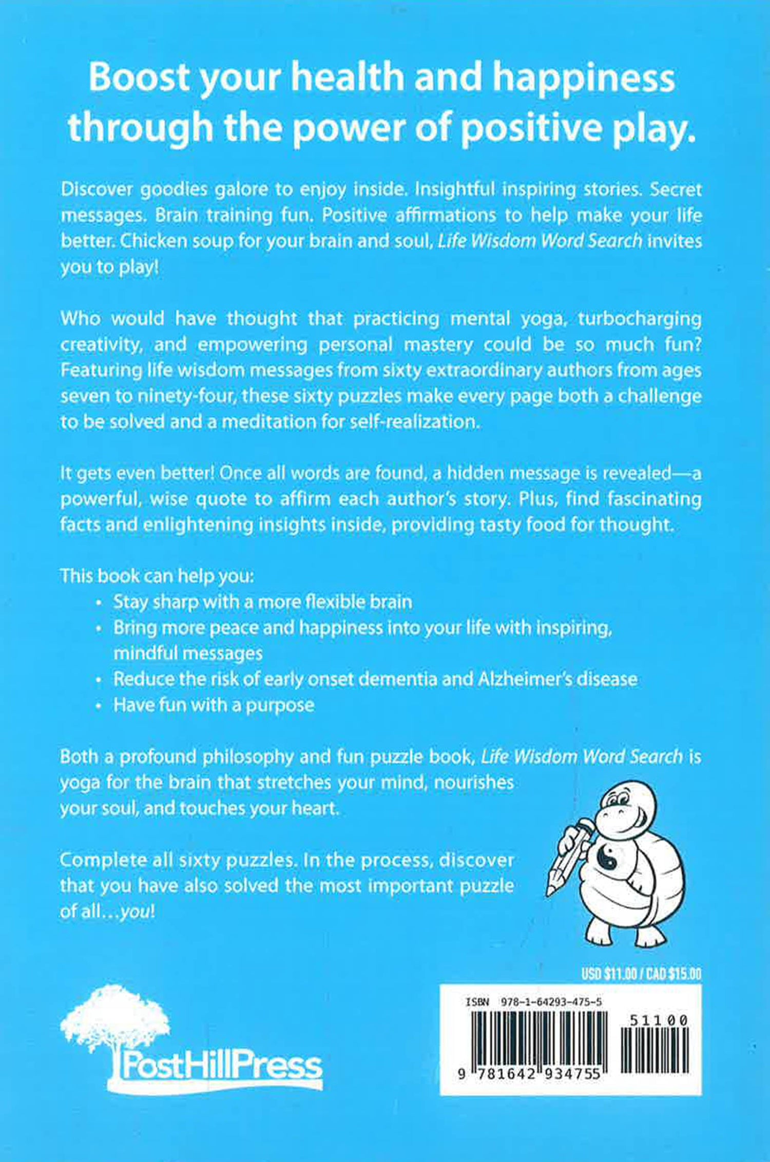 Discover goodies galore to enjoy inside. Insightful inspiring stories. Secret messages. Brain training fun. Positive affirmations to help make your life better. Chicken soup for your brain and heart, Life Wisdom Word Search invites you to play!