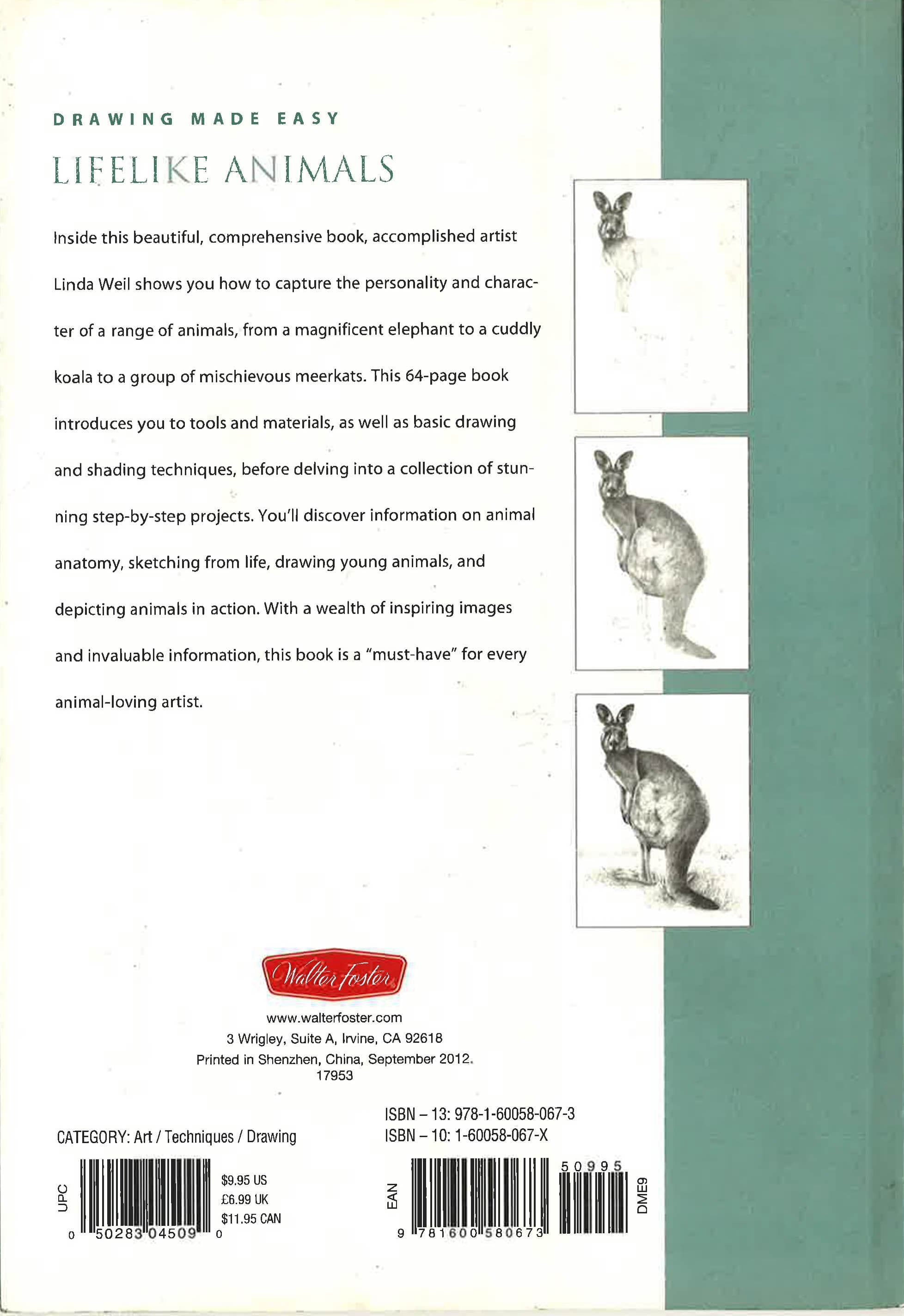 Learn to draw remarkably realistic animals step by stepInside this beautiful, comprehensive book, accomplished artist Linda Weil shows readers how to capture the personality and character of a range of animals, from a magnificent elephant to a cuddly koala to a group of mischievous meerkats. The 64-page book introduces readers to tools and materials, as well as basic drawing and shading techniques, before delving into a collection of stunning step-by-step projects. Aspiring artists will discover information on animal anatomy, sketching from life, drawing young animals, and depicting animals in action. With a wealth of inspiring images and invaluable information, this book is a "must-have" for every animal-loving artist.