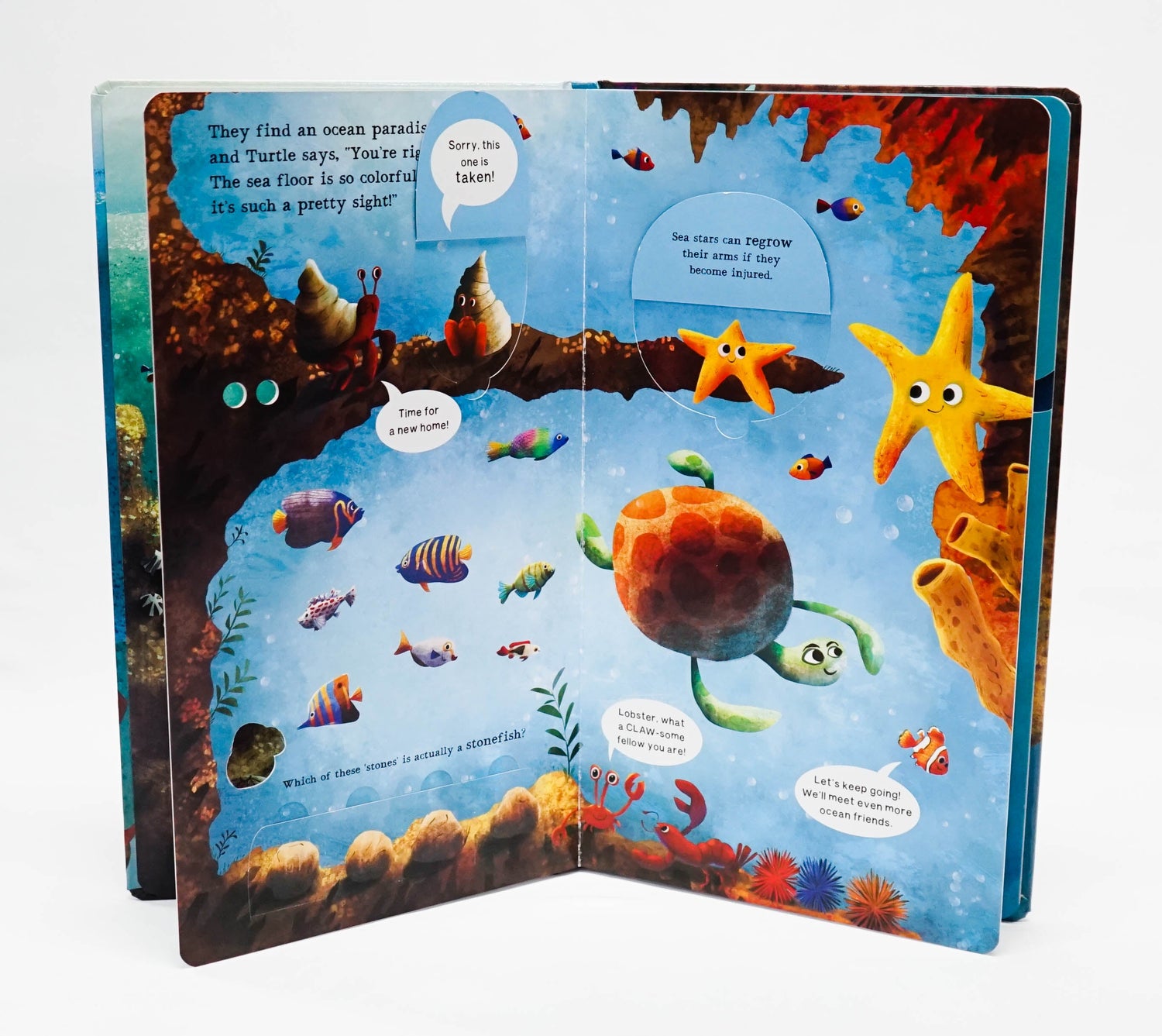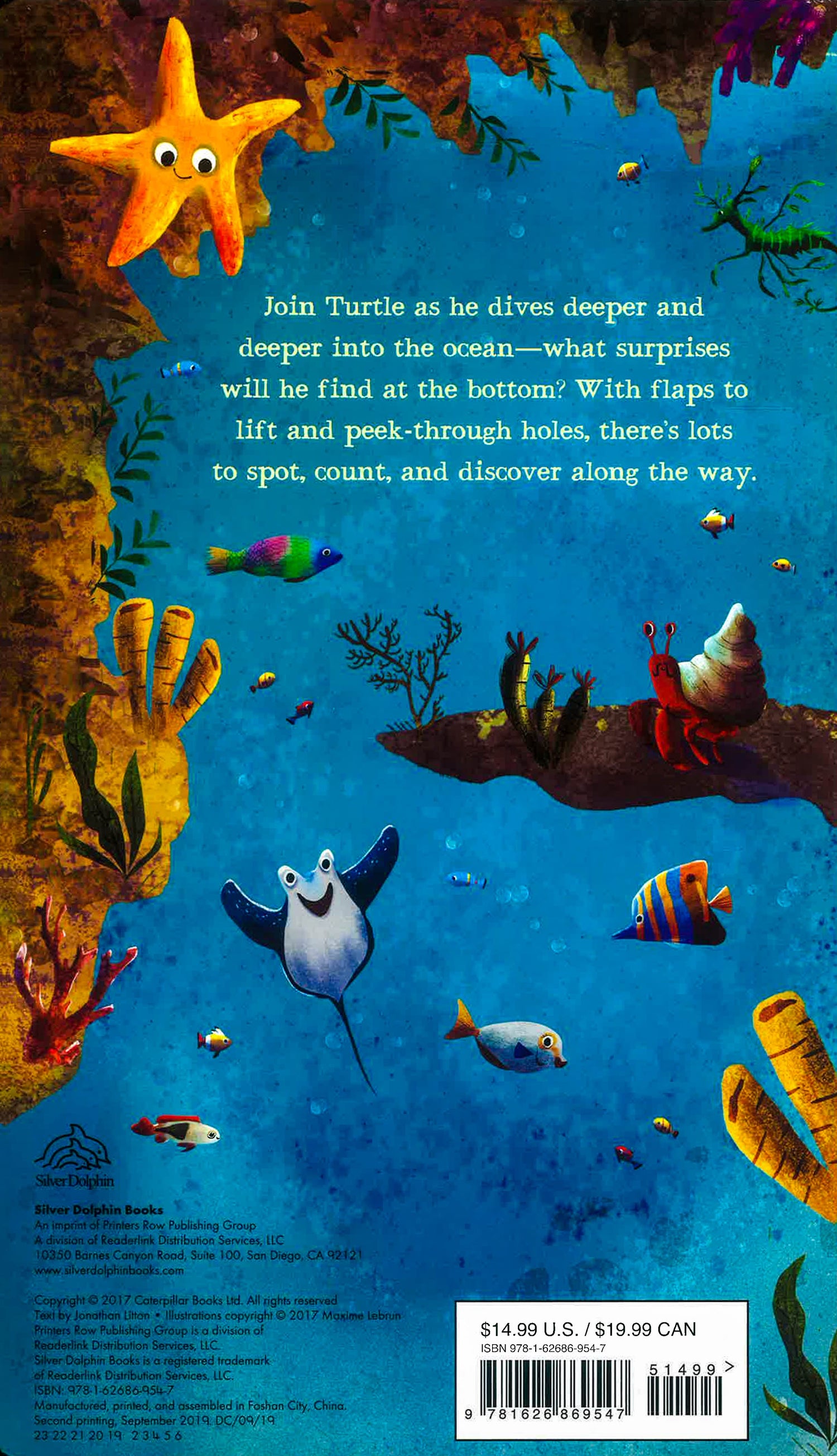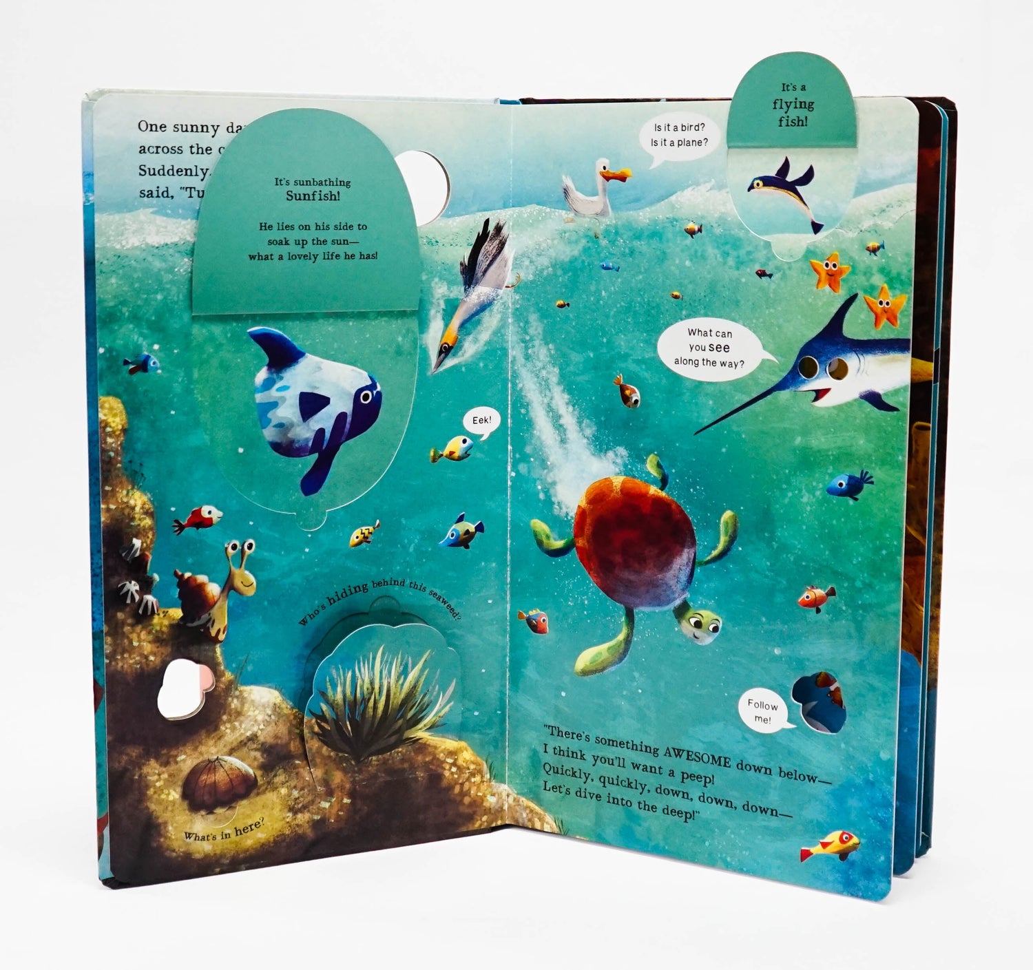 Join Turtle as he dives deeper and deeper into the ocean - what surprises will he find at the bottom? With flaps to lift and peek-through holes, there's lots to spot, count, and discover along the way.
