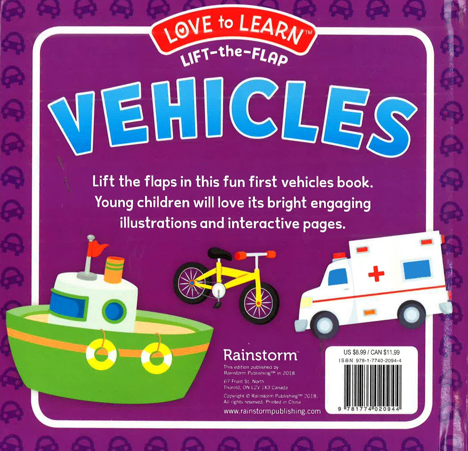 Lift the flaps in this fun first vechicles book. Young children will love its bright engaging illustrations.