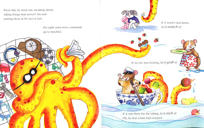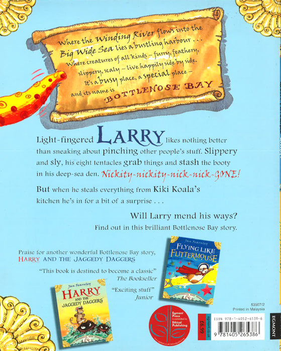 Where the Winding River flows into the Big Wide Sea lies a bustling harbour . . . where creatures of all kinds - furry, feathery, slippery, scaly - live happily side by side. It's a busy place, a special place - and its name is BOTTLENOSE BAY Light-Fingered LARRY likes nothing better than sneaking about pinching other people's stuff. Slippery and sly, his eight tentacles grab things and stash the booty in his deep sea den. Nickity-nickity-nick-nick-gone! But when he steals Kiki Koala's stuff from the Jolly Tugboat Inn he's in for a bit of a surprise . . Will Larry mend his ways? Find out in this brilliant Bottlenose Bay story. From bestselling, award-winning author/illustrator Jan Fearnley, Bottlenose Bay is a hugely detailed world bound to captivate children, with hundreds of loveable characters to get to know, including our plucky hero, Harry the harbour mouse.