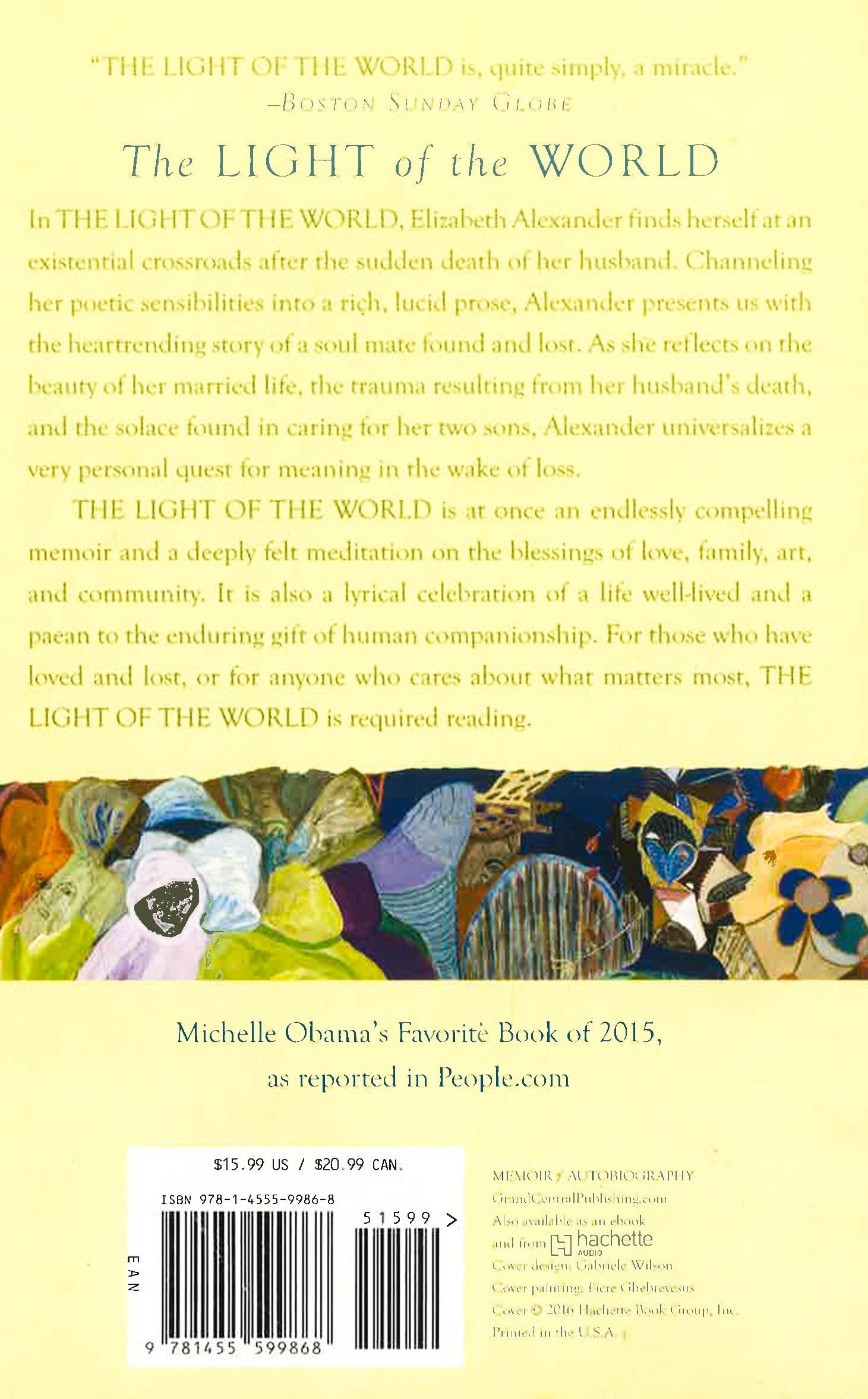 In THE LIGHT OF THE WORLD, Elizabeth Alexander finds herself at an existential crossroads after the sudden death of her husband. Channeling her poetic sensibilities into a rich, lucid price, Alexander tells a love story that is, itself, a story of loss. As she reflects on the beauty of her married life, the trauma resulting from her husband's death, and the solace found in caring for her two teenage sons, Alexander universalizes a very personal quest for meaning and acceptance in the wake of loss. THE LIGHT OF THE WORLD is at once an endlessly compelling memoir and a deeply felt meditation on the blessings of love, family, art, and community. It is also a lyrical celebration of a life well-lived and a paean to the priceless gift of human companionship. For those who have loved and lost, or for anyone who cares what matters most, THE LIGHT OF THE WORLD is required reading.