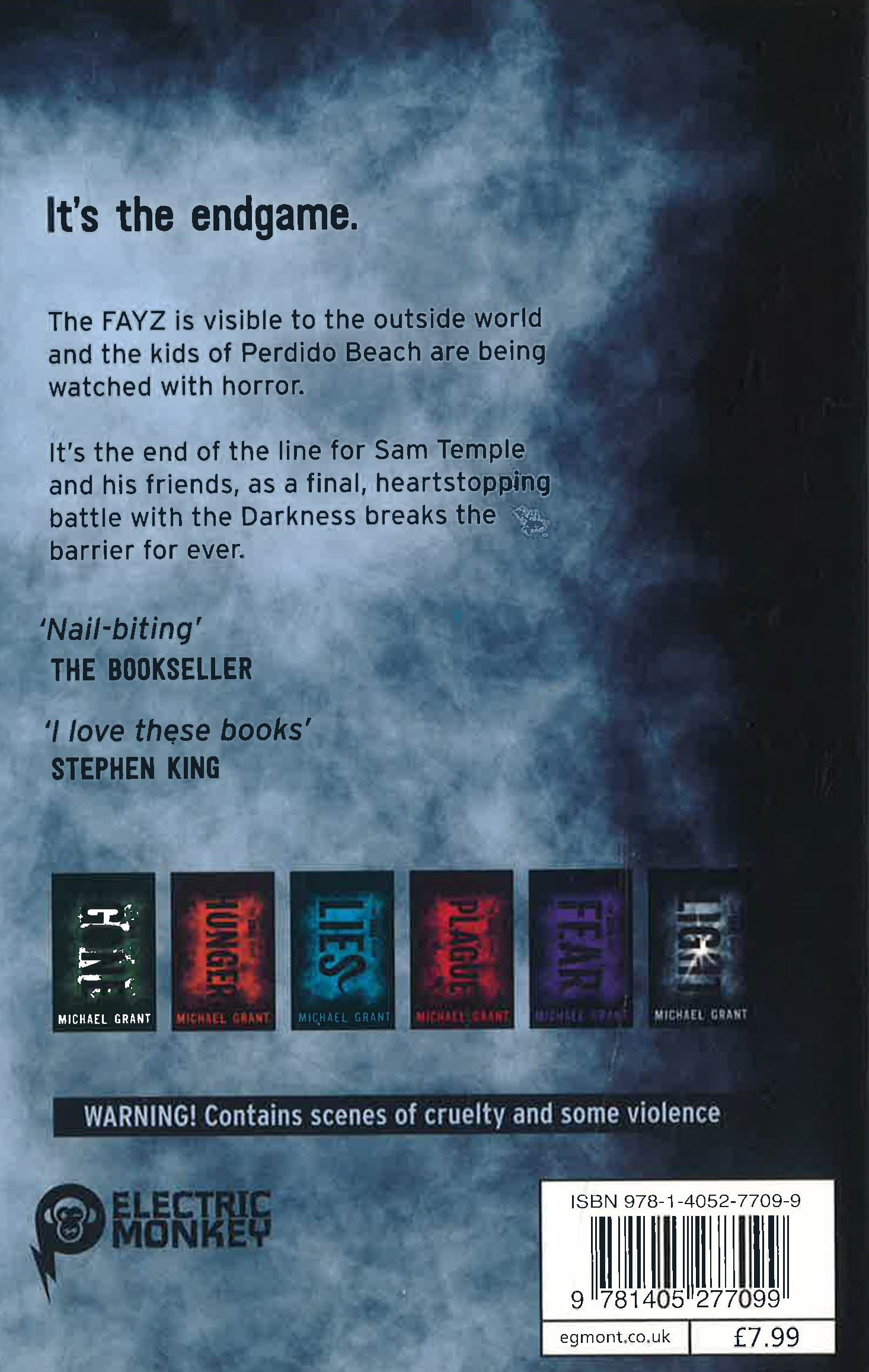 It's Lord of the Flies for the Heroes generation. All eyes are on Perdido Beach. The barrier wall is now as clear as glass and life in the FAYZ is visible for the entire outside world to see. Life inside the dome remains a constant battle and the Darkness, away from watchful eyes, grows and grows ...The society that Sam and Astrid have struggled so hard to build is about to be shattered for good. It's the end of the FAYZ. Who will survive to see the light of day?
