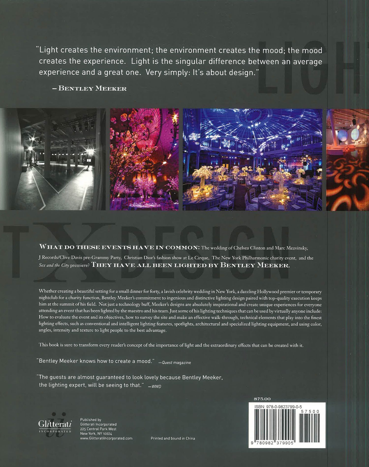 This stunning collection features the inimitable work of world-renowned lighting design guru Bentley Meeker. Meeker's designs are absolutely inspirational and create unique experiences for everyone attending an event that has been lit by the maestro. Light x Design: 20 Years of Lighting is a beautiful collection featuring the inimitable work of world-renowned lighting design guru Bentley Meeker, whose work encompasses events such as the wedding of Chelsea Clinton and Mark Mezvinsky. Detailing his 20 years of glamorous illuminations that range from elaborate weddings to simpler and more private yet notable events both indoor and out; here are case studies that encompass the entertainment high points that most of us experience at some point in our lives. Whether it be a wedding, a concert, a catwalk and fashion show, more formalised corporate events or bar mitzvahs, Meeker is unrivalled in his visionary lighting and design production. The setting might be a dreamy wintery wonderland of white and blue for a wedding, or a concert stage ablaze in vivid purples and reds. This is work that is consistently cutting-edge and inspirational; and that will translate for any affair, big or small.