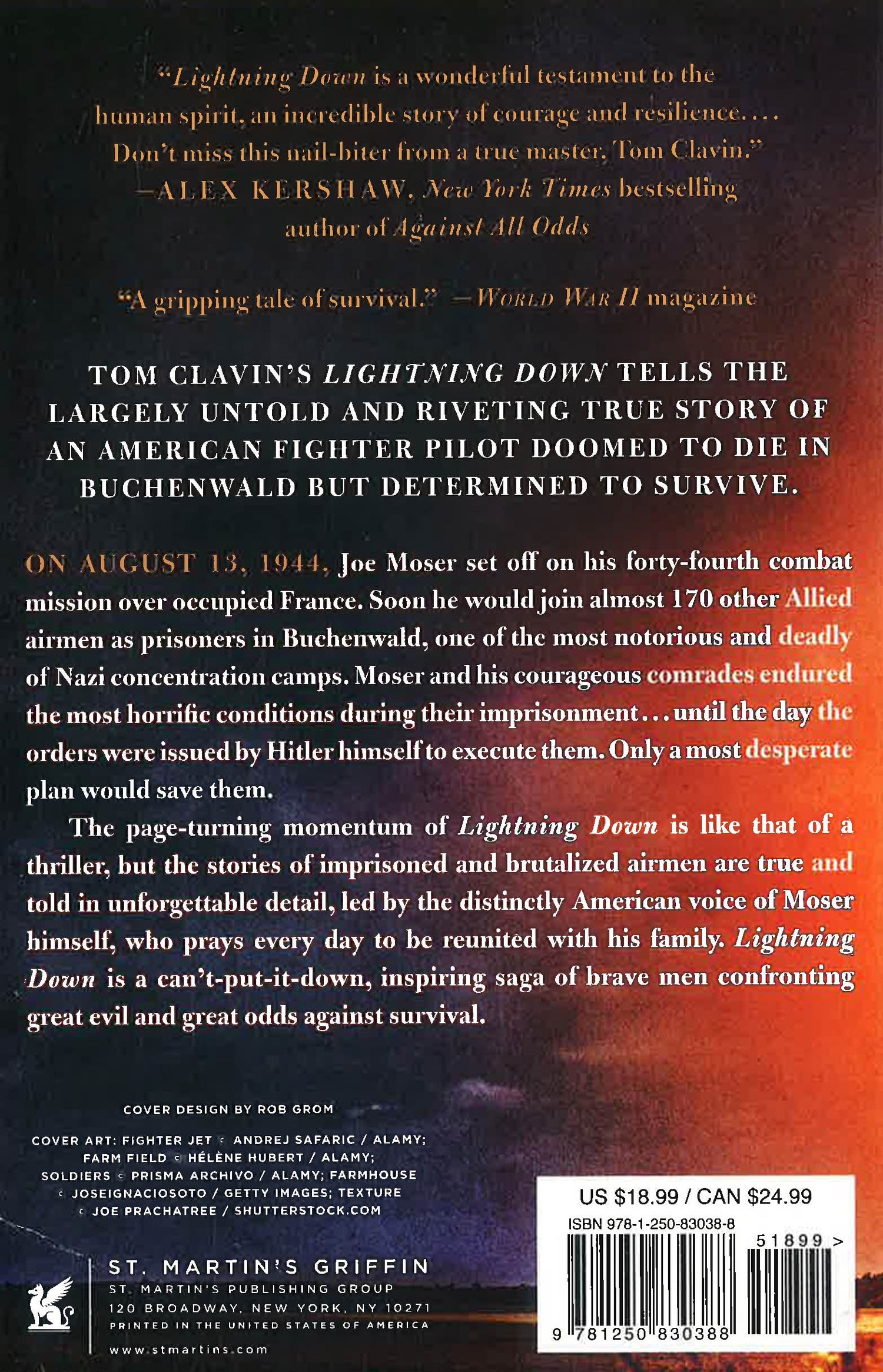 On August 13, 1944, Joe Moser set off on his forty-fourth combat mission over occupied France. Soon, he would join almost 170 other Allied airmen as prisoners in Buchenwald, one of the most notorious and deadly of Nazi concentration camps. Tom Clavin's Lightning Down tells this largely untold and riveting true story.