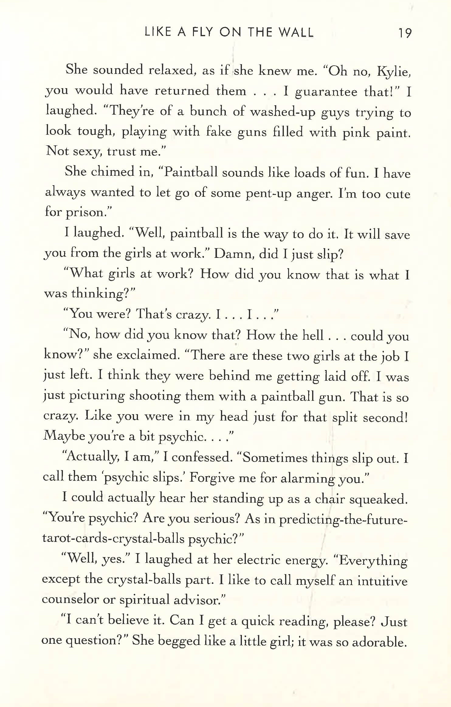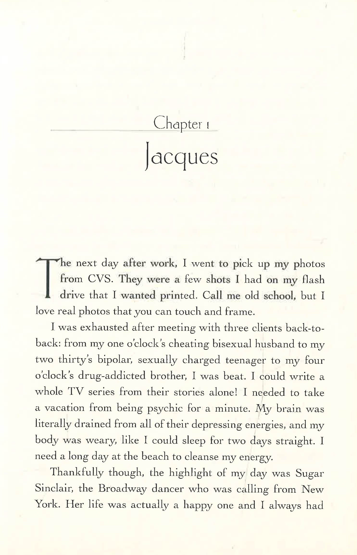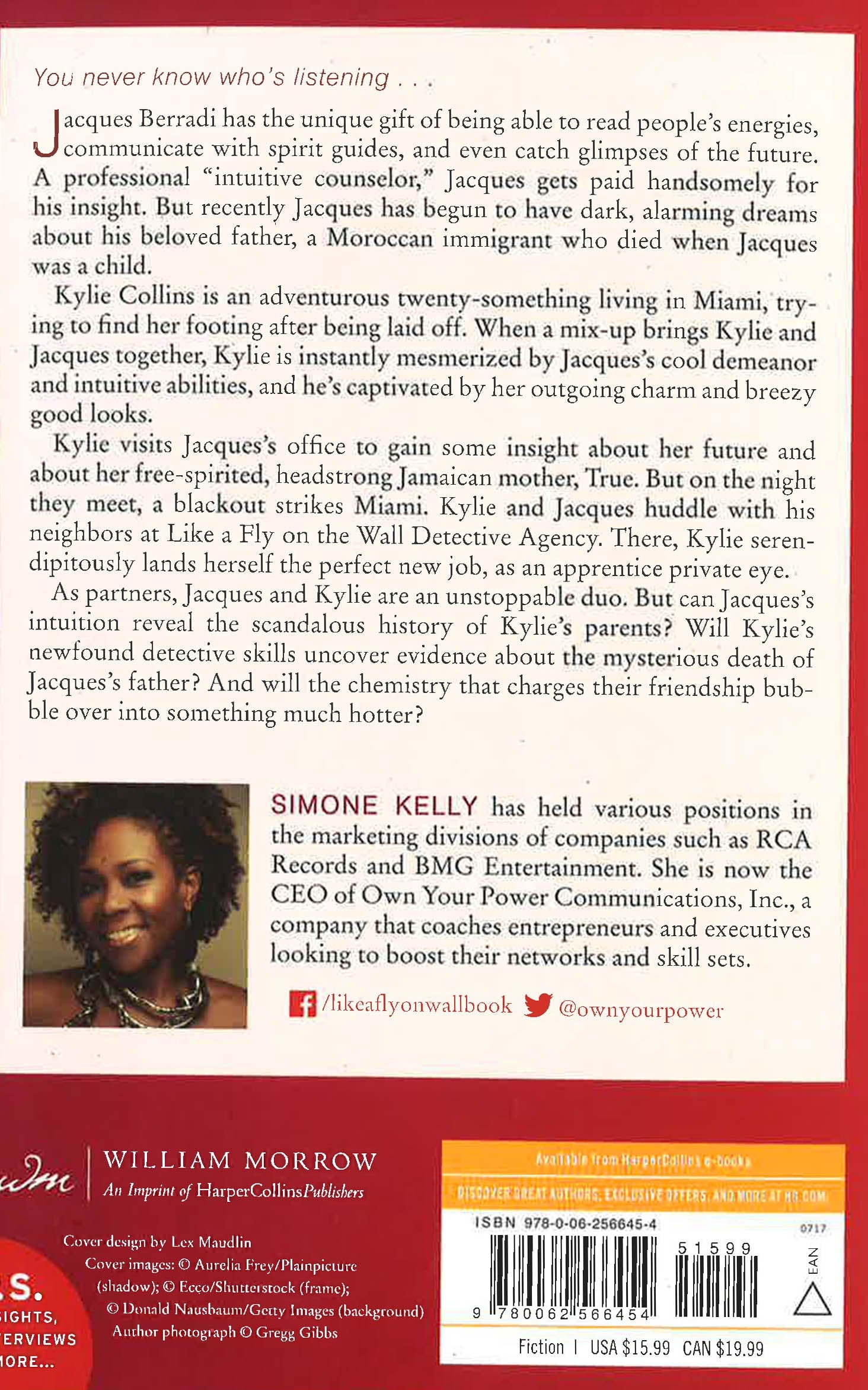 Meet Jacques Berradi. Moroccan-born and Manhattan-raised, his genuine, sexy-smooth allure goes hand in hand with a unique gift. Since Jacques was young, he has had the ability to read peoples’ energies, communicate with spirit guides, and even catch glimpses of people’s futures. Now a professional “intuitive counselor,” Jacques’s clients pay him handsomely for his insight. Unfortunately, Jacques’s psychic abilities don’t come with an off switch to tune out the world’s noise, nor do they always provide him with easy answers; recently Jacques has begun having dark, alarming dreams about his beloved father, a Moroccan immigrant who died when he was a boy.Meet Kylie Collins, an adventurous, Miami twentysomething who is trying to find her footing after being laid off from a cushy music industry job. When a mishap brings them together, Kylie is instantly mesmerized by Jacques’s cool demeanor and intuitive abilities, and he’s captivated by her outgoing charm and breezy good looks. Seeking to learn more about her family history - including the identity of the father she’s never known - Kylie visits Jacques’s office to gain some insight about her future, and about her free-spirited and headstrong Jamaican mother, True. But on the night that they meet, a rolling blackout cuts off power throughout Miami. Kylie and Jacques, and a few of his clients, head to the only place in the neighborhood with enough light to see: Like a Fly on the Wall Detective Agency. There, Kylie serendipitously lands herself the perfect new job as an apprentice private eye.As partners, Jacques and Kylie are an unstoppable duo. Can Jacques’s intuition reveal the scandalous history of Kylie’s mother and father? Will Kylie’s newfound detective skills uncover evidence about the death of Jacques’s father? And will the chemistry that charges their friendship bubble over into something much, much hotter…?