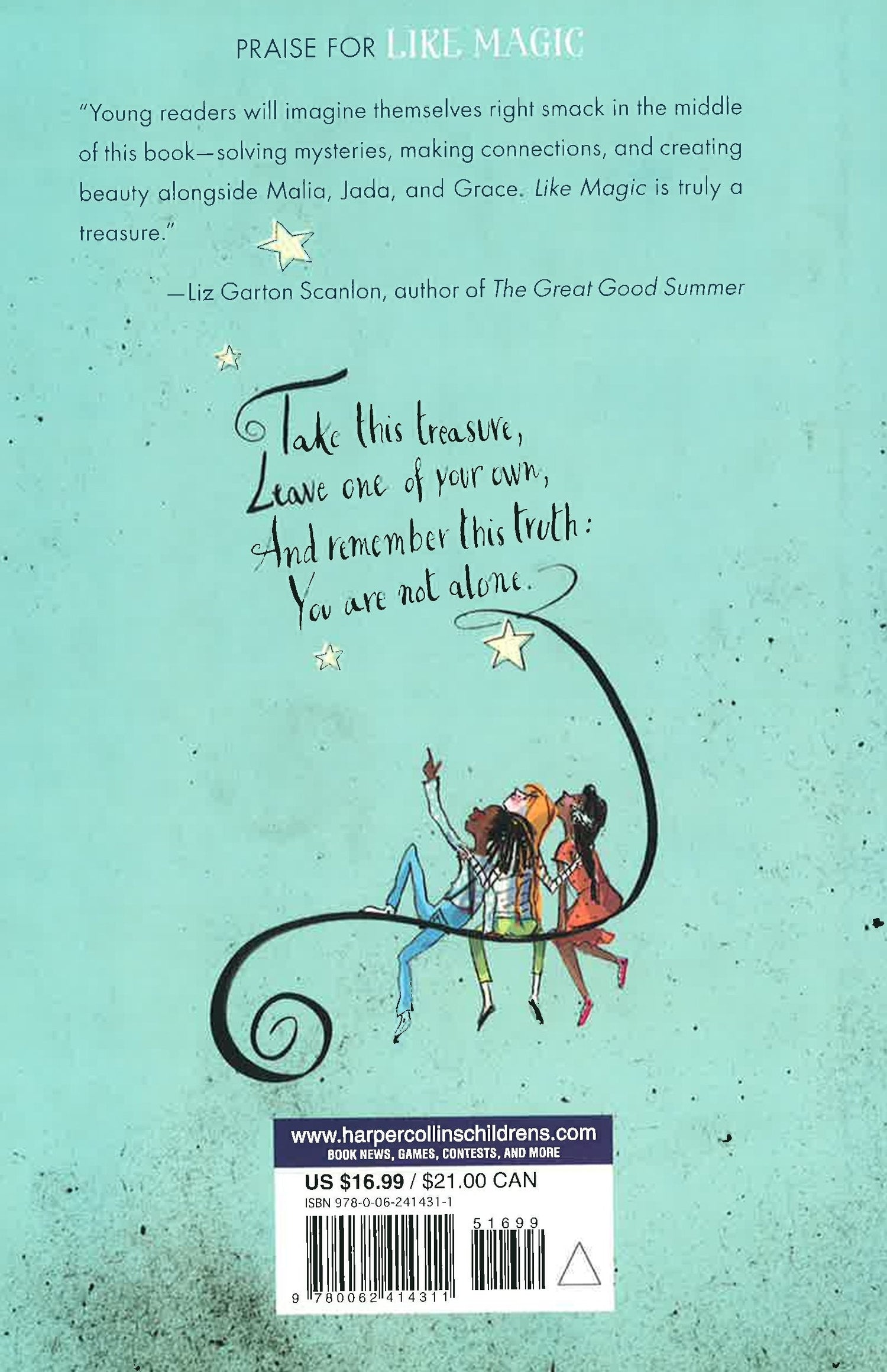 For three ten-year-old girls, their once simple worlds are starting to feel too big.Painfully shy Grace dreads starting fifth grade now that her best friend has moved away. Jada hopes she’ll stop feeling so alone if she finds the mother who left years ago. And Malia fears the arrival of her new baby sister will forever change the family she loves.When the girls each find a mysterious treasure box in their library and begin to fill the box with their own precious things, they start to feel less alone. But it’s up to Grace, Jada, and Malia to take the treasures and turn them into something more: true friendship.