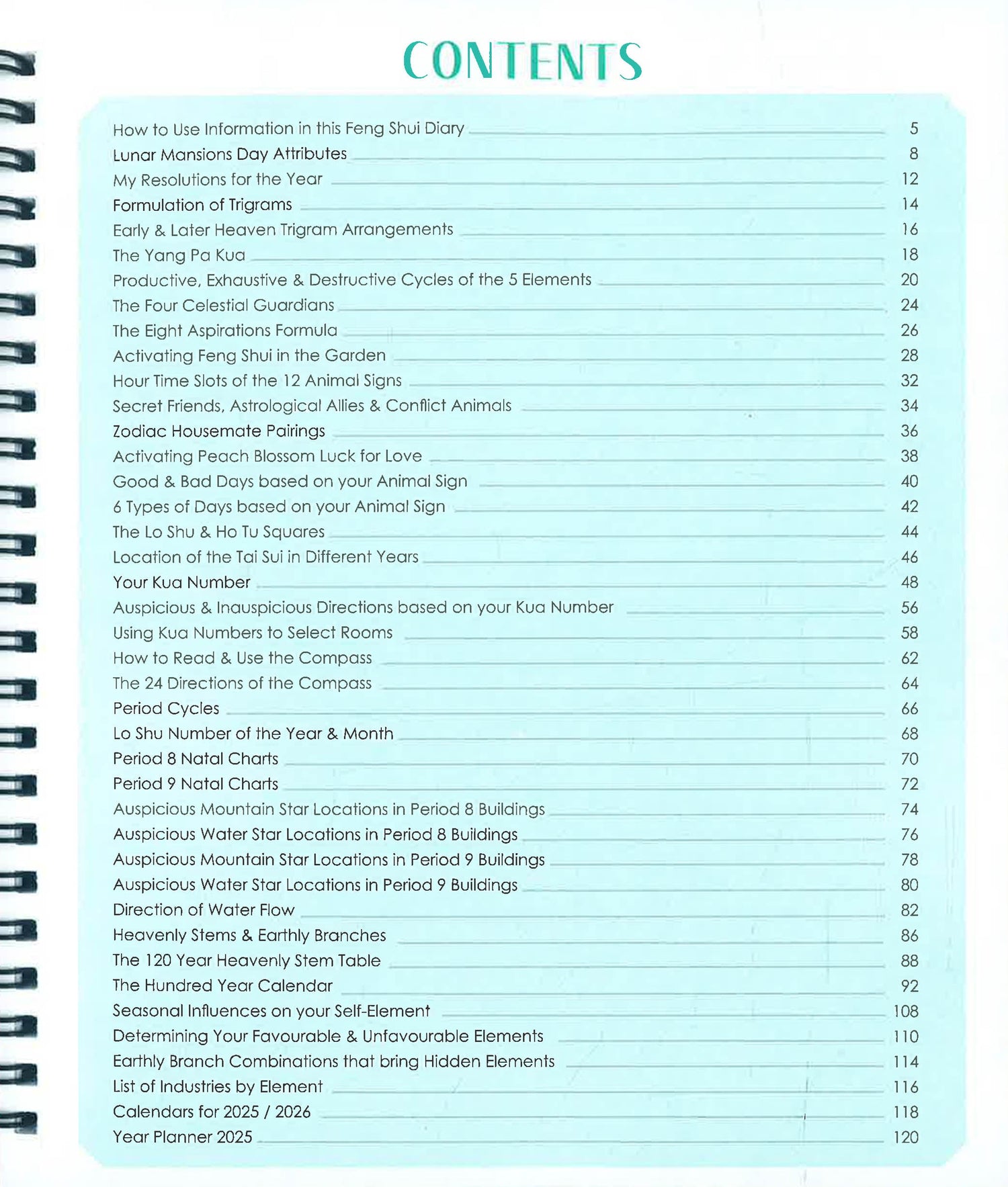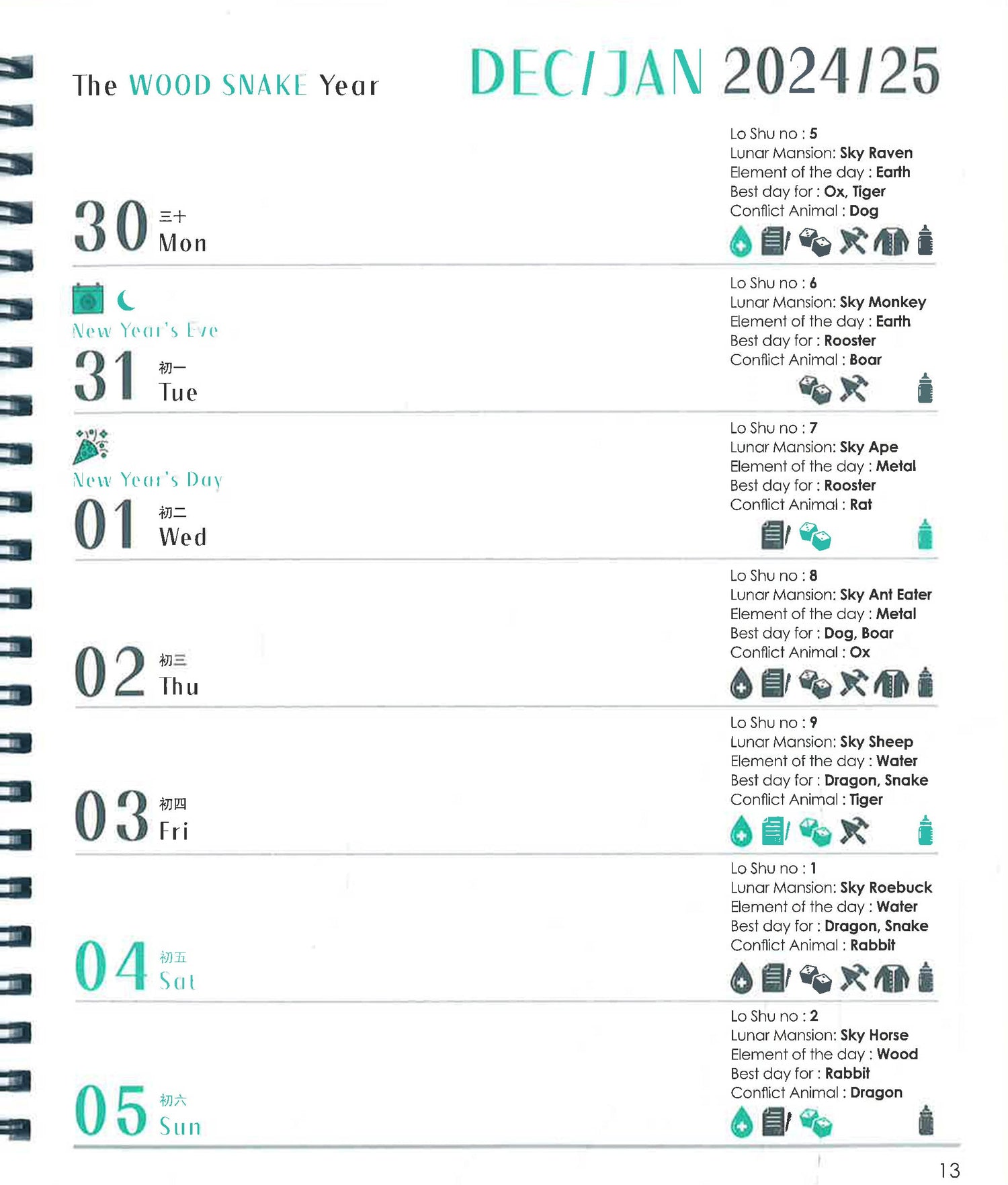 The Year of the Wood Snake is ruled by Yin Fire (branch) and Yin Wood (stem), so it is crucial to plan ahead and take note of the days that are auspicious for specific activities, and days that are not in order to make the most of the year. Lillian Too's Feng Shui Diary features the Hundred Year calendar, Personal Direction tables, Period 8 & Period charts, Kua numbers, 24 Mountains, 8 Aspirations, Astrology Affinities and Combinations, Formulation of Trigrams, Lo Shu and Ho Tu squares, and many more useful resource tables invaluable to any practitioner of feng shui. Lots of space also to write in, to use as your planner for the year, or to make a record of how the year unfolds for you.