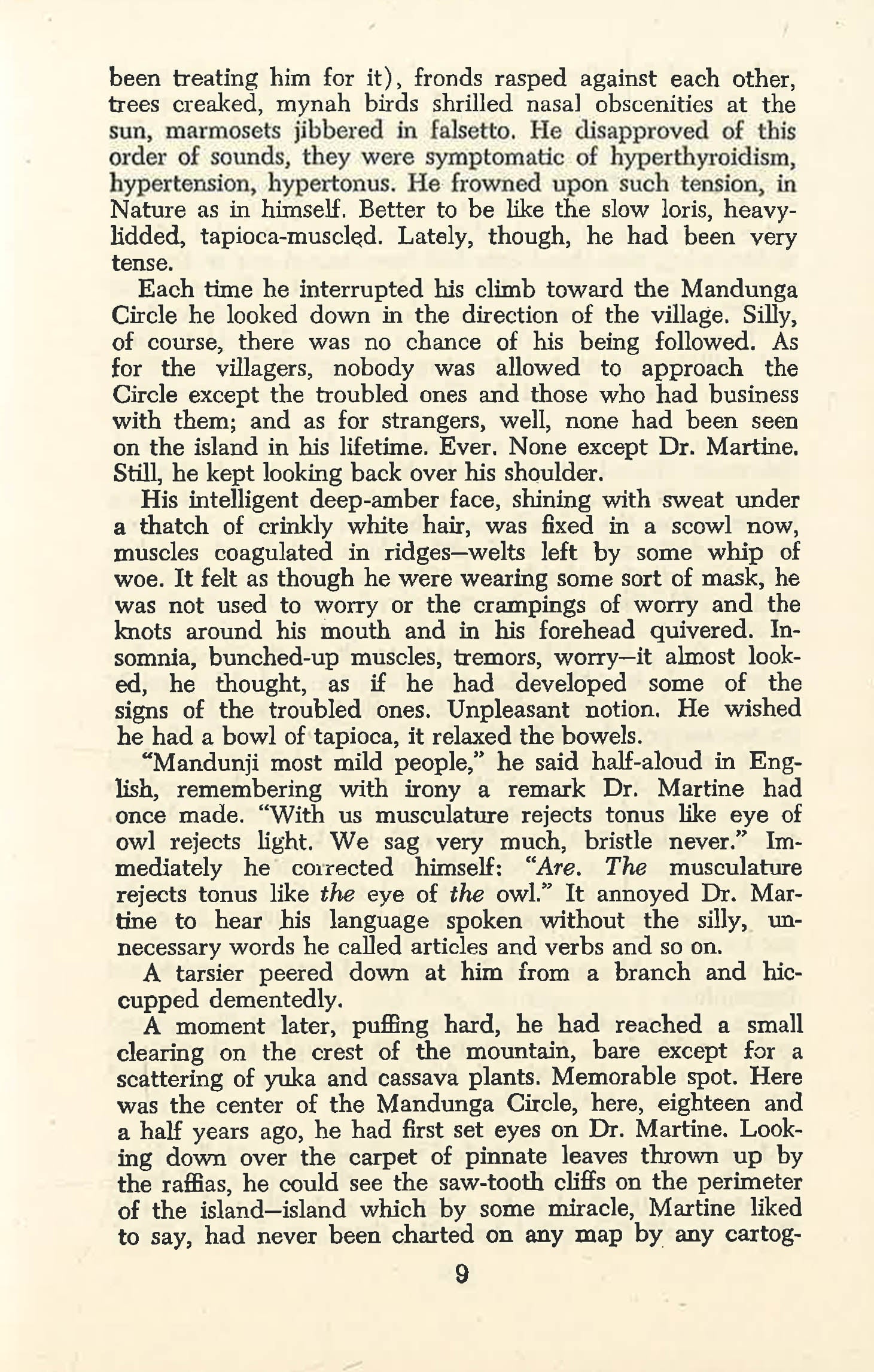 In the aftermath of an atomic war, a new international movement of pacifism has arisen. Multitudes of young men have chosen to curb their aggressive instincts through voluntary amputation - disarmament in its most literal sense.