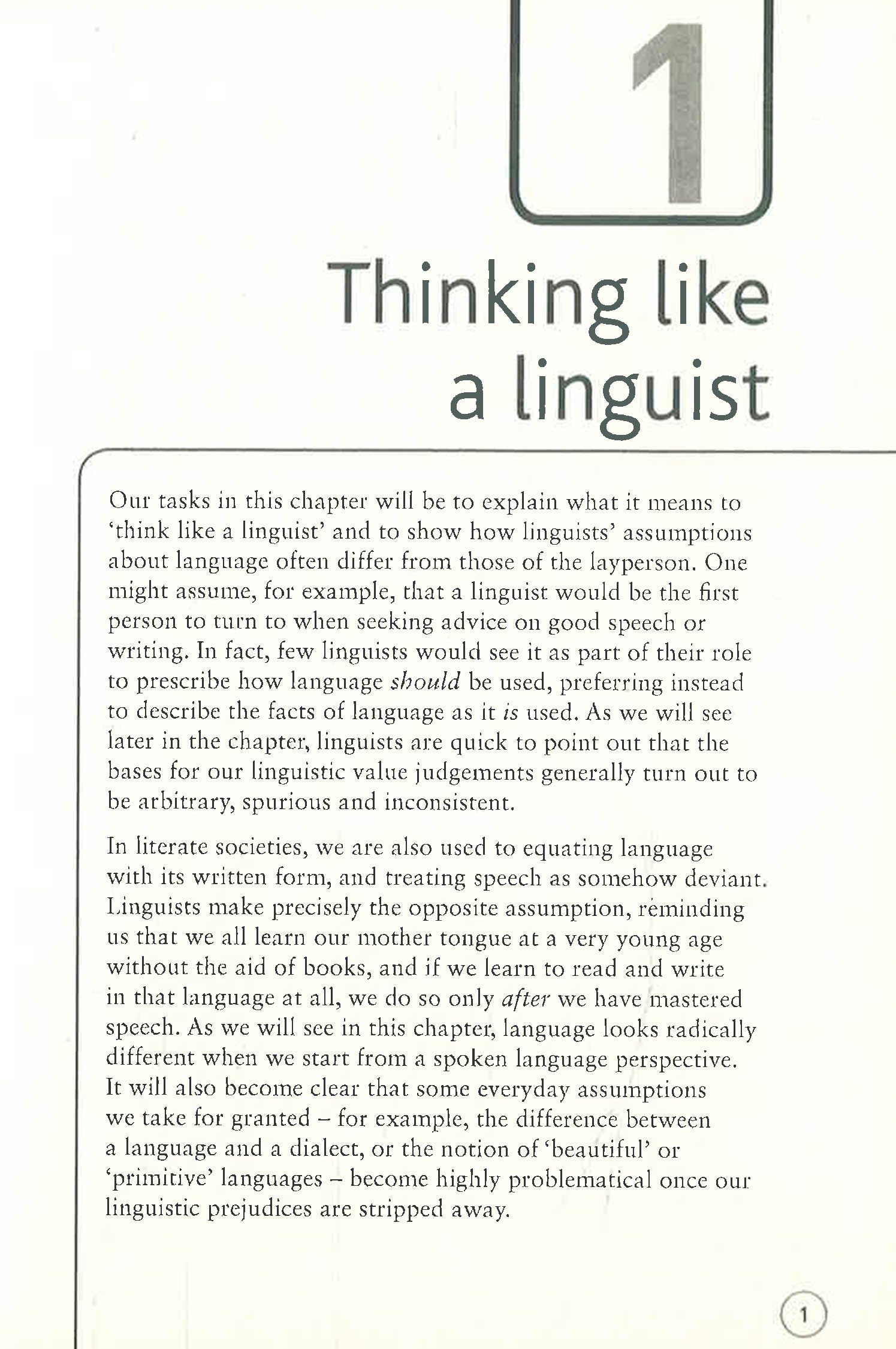 separate chapters focusing on linguistic thought, syntax, sound systems, morphology,