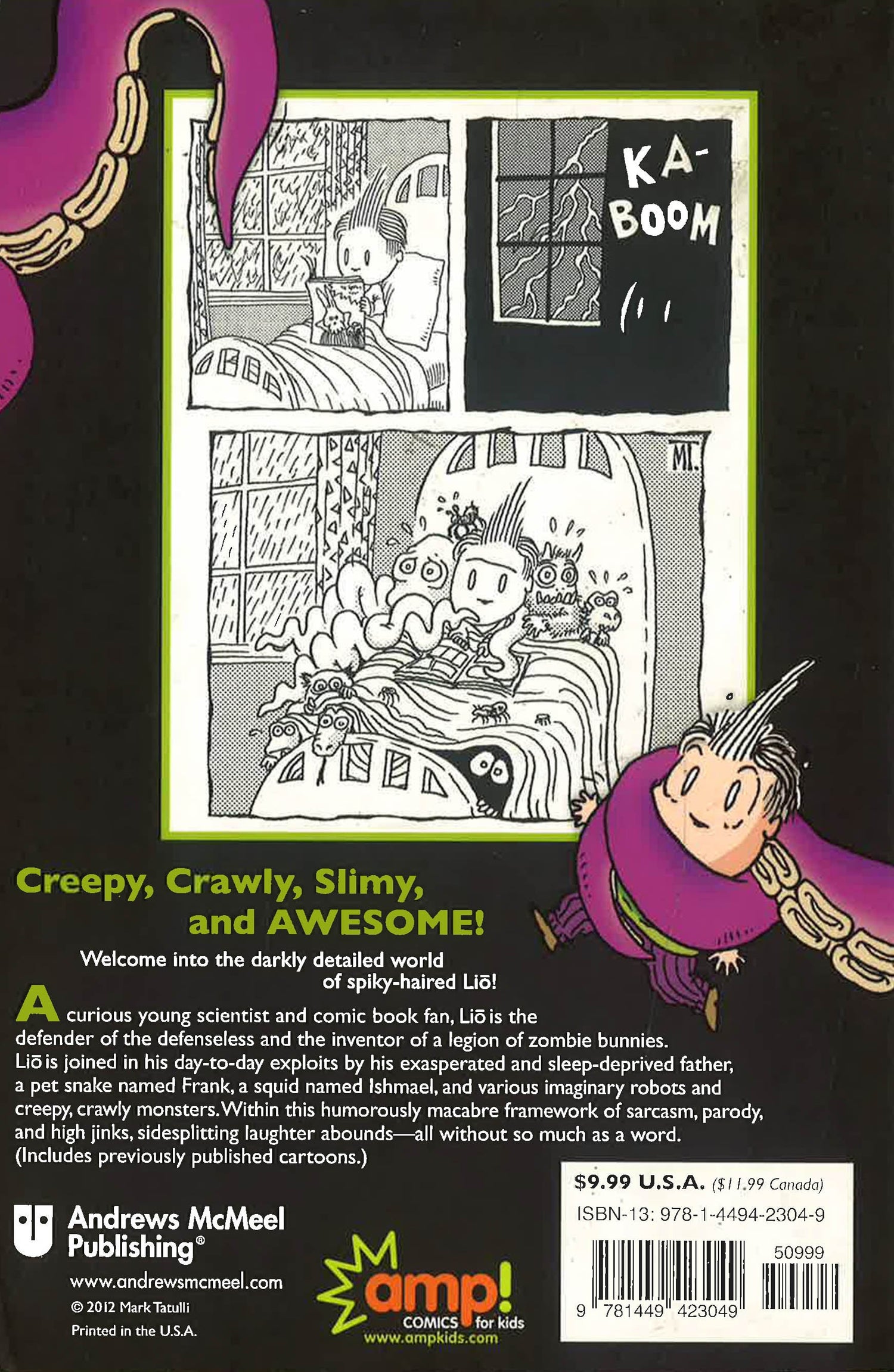 The world of Lio is filled with the extraordinary-monsters under the bed, wild reptile pets, robot inventions, weird science-but it's all commonplace for this most uncommon young man. Mark Tatulli renders this pantomime strip in pen-and-ink style, giving the artwork a dark, spidery feel to match the strip's dark humour. Lio explores the twisted realm of a kid's imagination-at once bizarre, creepy, and fun. Now, in this collection edited specially for kids, Lio is available to his most dedicated fans.