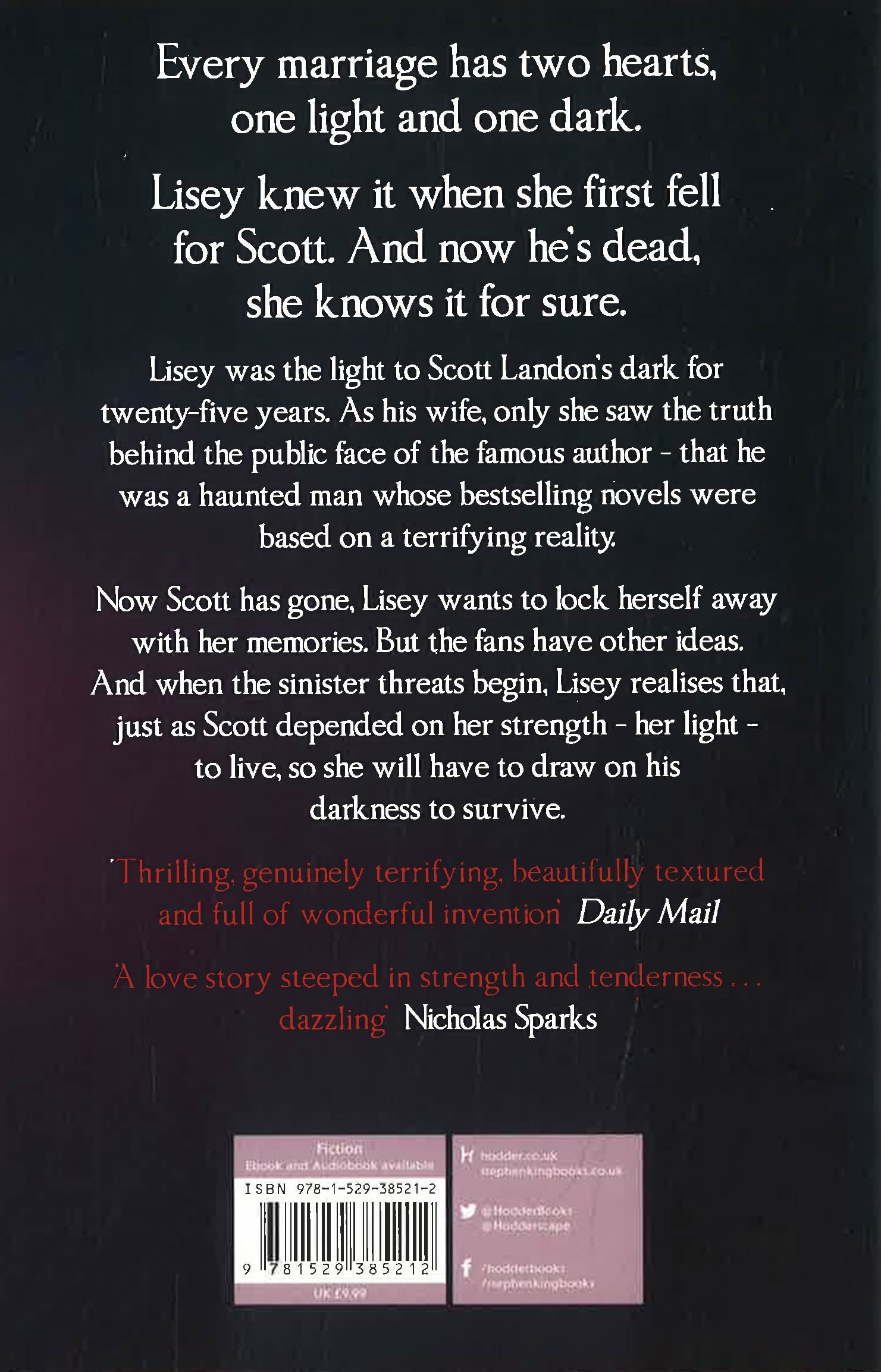 Now Scott has gone, Lisey wants to lock herself away with her memories. But the fans have other ideas. And when the sinister threats begin, Lisey realises that, just as Scott depended on her strength - her light - to live, so she will have to draw on his darkness to survive.