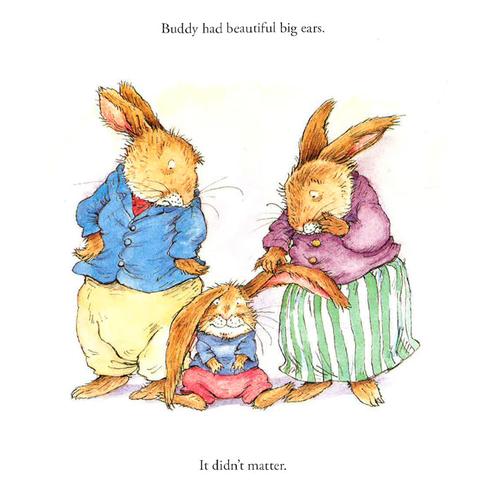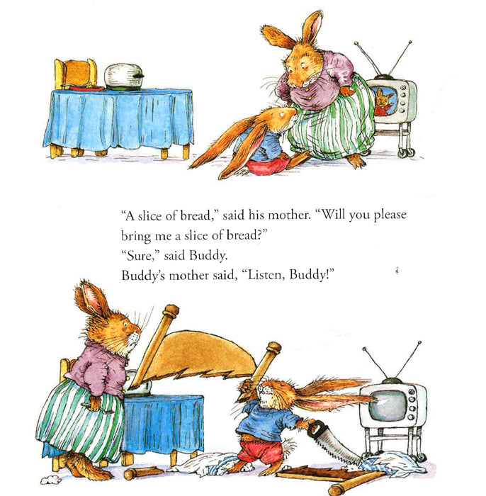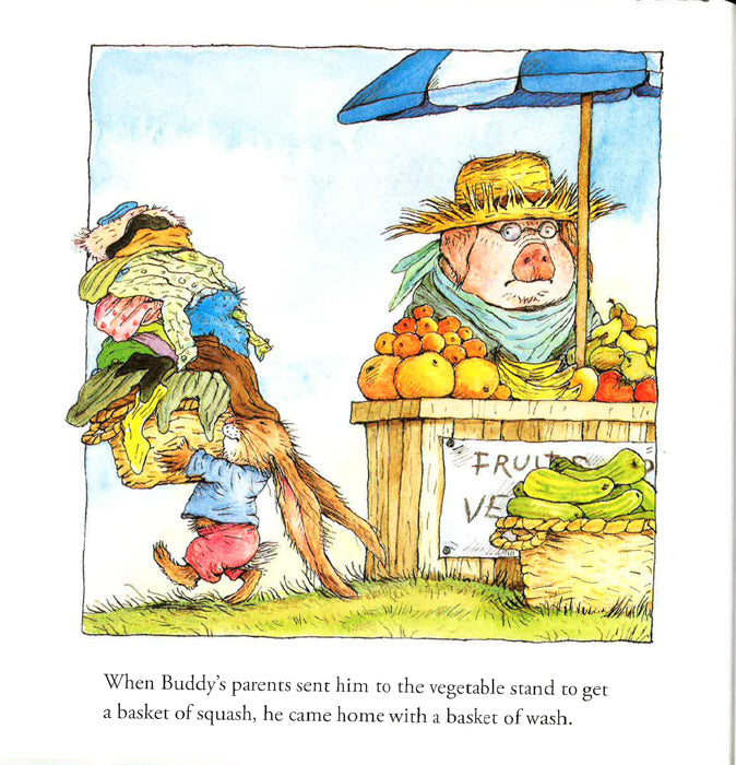 "Buddy’s father had a beautiful big nose. He was a great sniffer. Buddy’s mother had beautiful big teeth. She was a great chomper. Buddy had beautiful big ears. It didn’t matter." When someone says squash, Buddy hears wash. Tomatoes, you say? He buys potatoes. One day—because he didn’t listen—Buddy accidentally ends up at Scruffy Varmint’s scary cave. Unfortunately, he doesn’t listen to Scruffy, either…and almost ends up as bunny stew! This delightful cautionary tale is now part of a fun 8 x 8 hardcover series about life lessons.