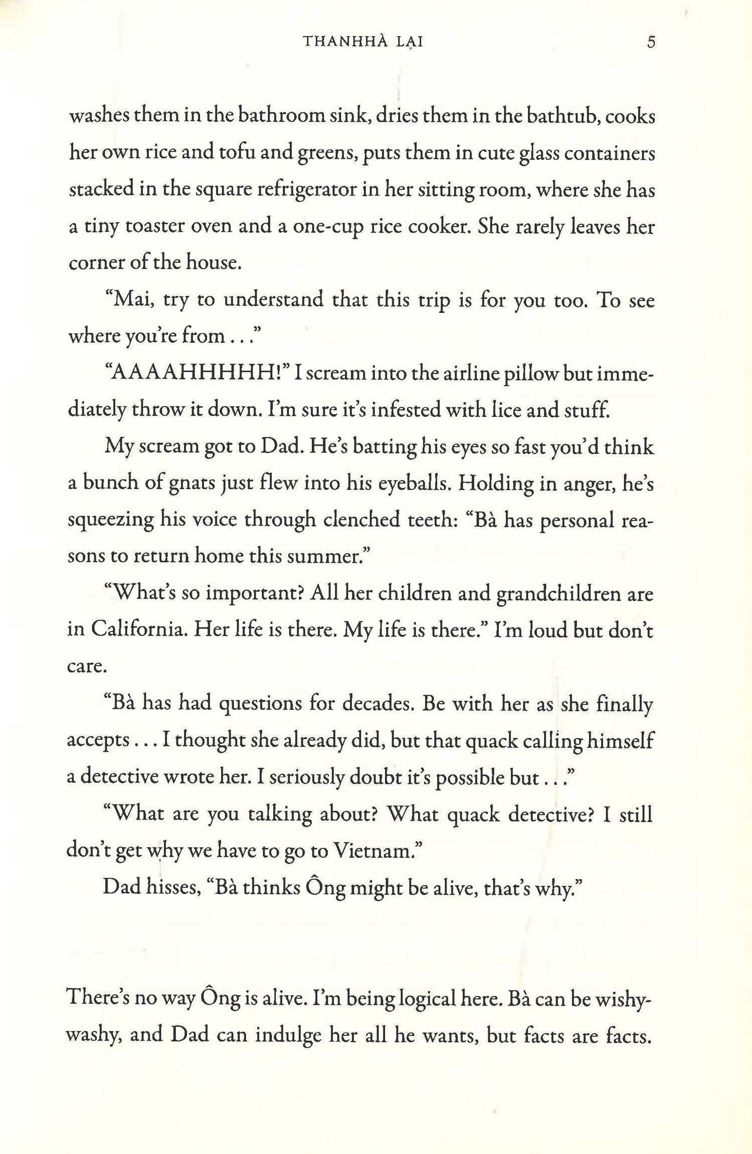 A California girl born and raised, Mai can t wait to spend her vacation at the beach. Instead, though, she has to travel to Vietnam with her grandmother, who is going back to find out what really happened to her husband during the Vietnam War. Mai s parents think this trip will be a great opportunity for their out-of-touch daughter to learn more about her culture. But to Mai, those are their roots, not her own. Vietnam is hot, smelly, and the last place she wants to be. Besides barely speaking the language, she doesn t know the geography, the local customs, or even her distant relatives. To survive her trip, Mai must find a balance between her two completely different worlds. Perfect for fans of Rita Williams-Garcia and Linda Sue Park, Listen, Slowly is an irresistibly charming and emotionally poignant tale about a girl who discovers that home and culture, family and friends, can all mean different things.