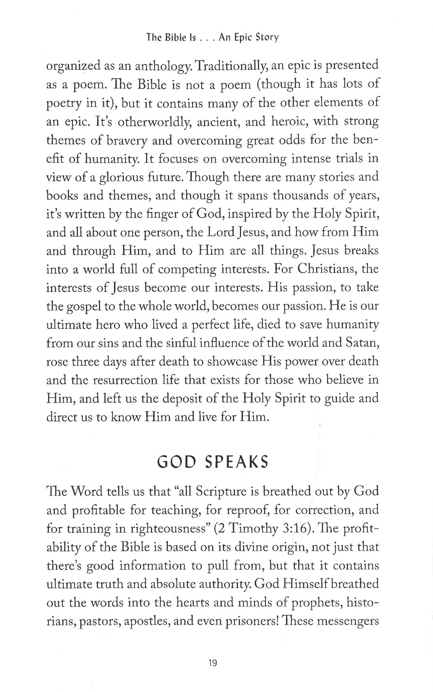 The Bible is an epic story that God has revealed to us through diverse genres and literary features. Its message and method are both meant to transform our hearts. Our goal as interpreters isn't to meld the Scriptures into a bland conglomerate, but to recognize the multiple forms in which God's Word comes to us. In so doing, we'll encounter the ongoing story of Jesus's redemption and learn how He calls His people to live in our complex world today.