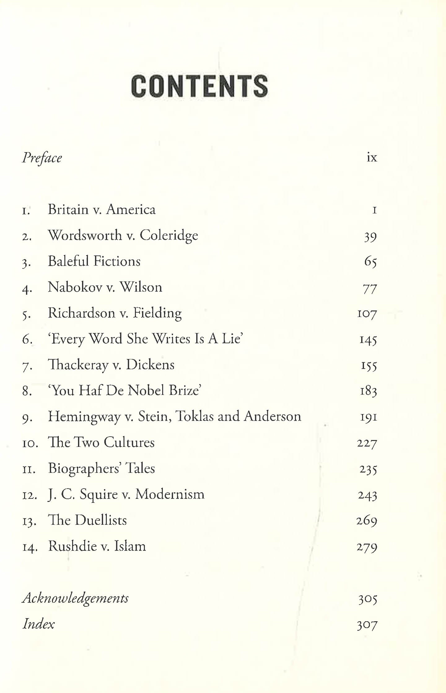 Squire's qualms with modernism and Salman Rushdie's run-in with Islam, Literary Rivals is an enjoyable romp through the world of the fiercest writers' rivalries and the most bizarre literary stand-offs.