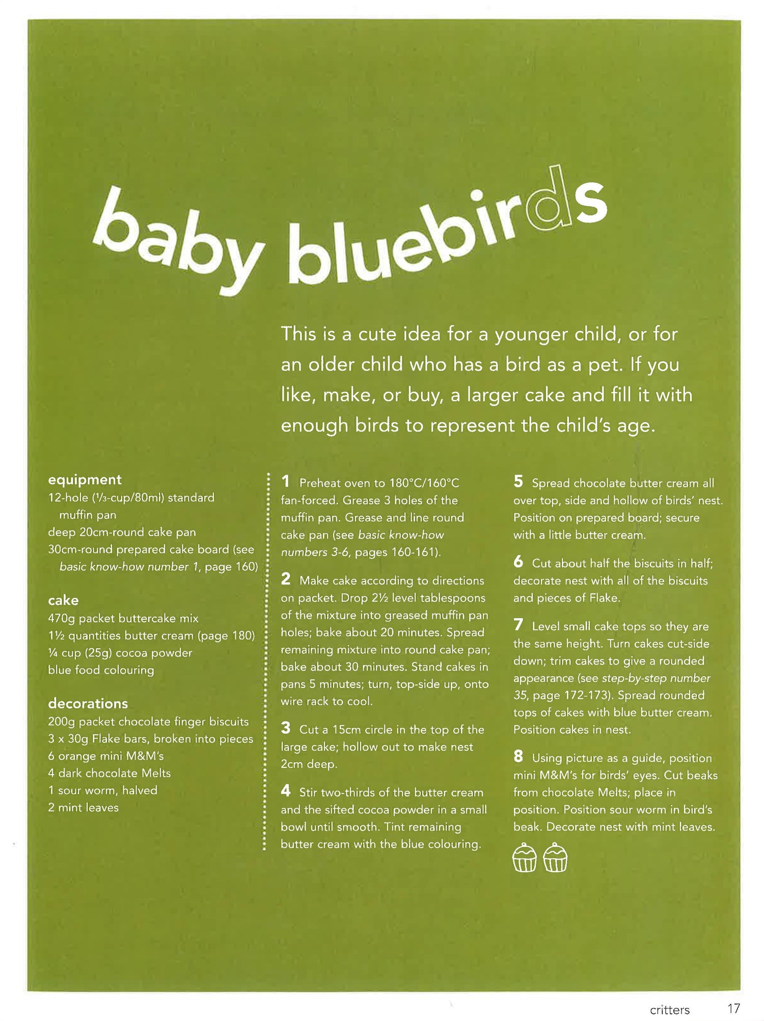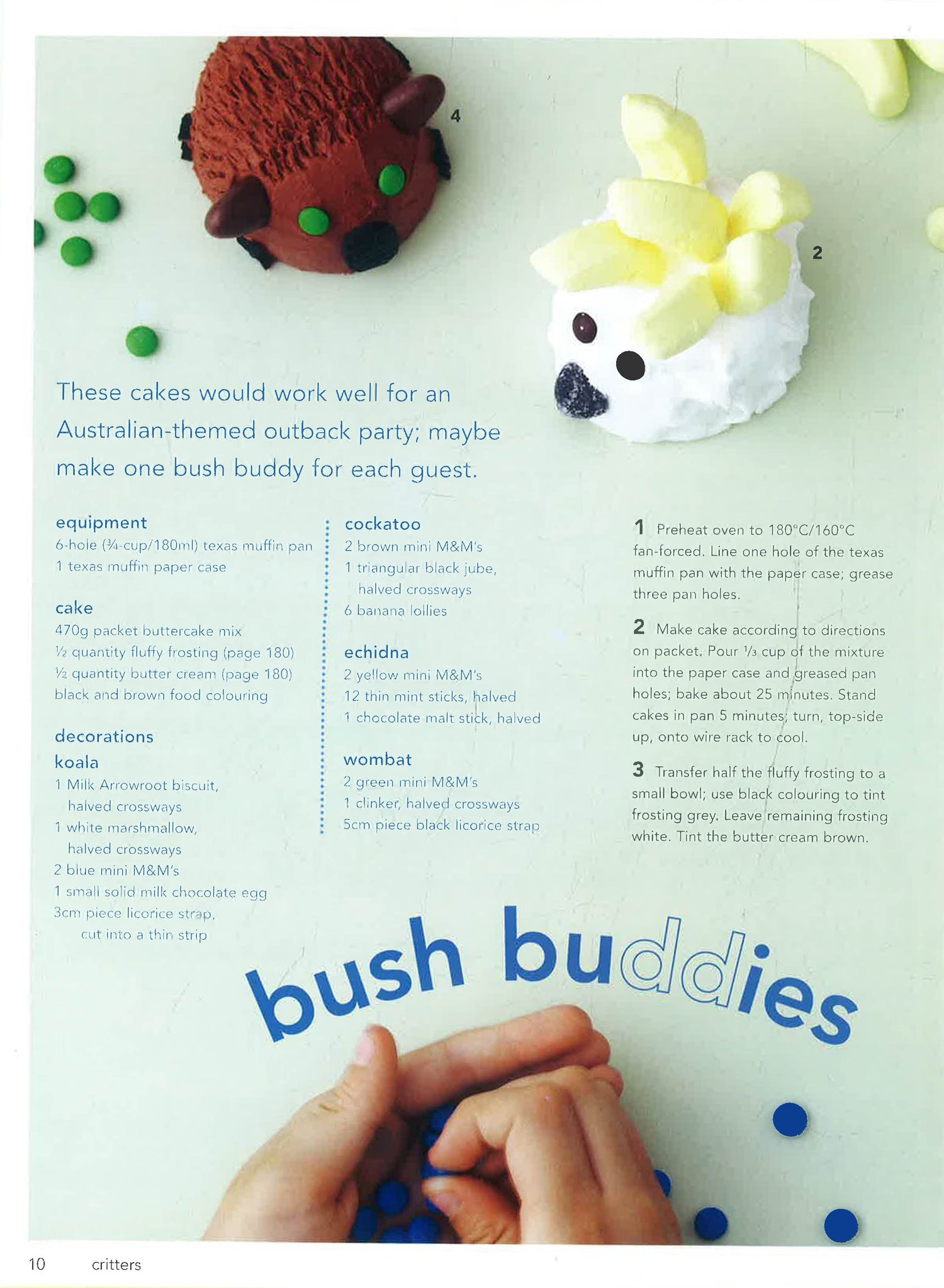 Little party cakes are becoming very popular at birthday parties and for children to take to school and pre-school. They're fun to make and children love the idea of a birthday cake especially made for them. There are animals and insects, space creatures and cricket balls, farmyards and cars and trains and ghosts. Most cakes are decorated with readily available lollies and chocolates so you don't need cake decorating experience to make something wonderful.