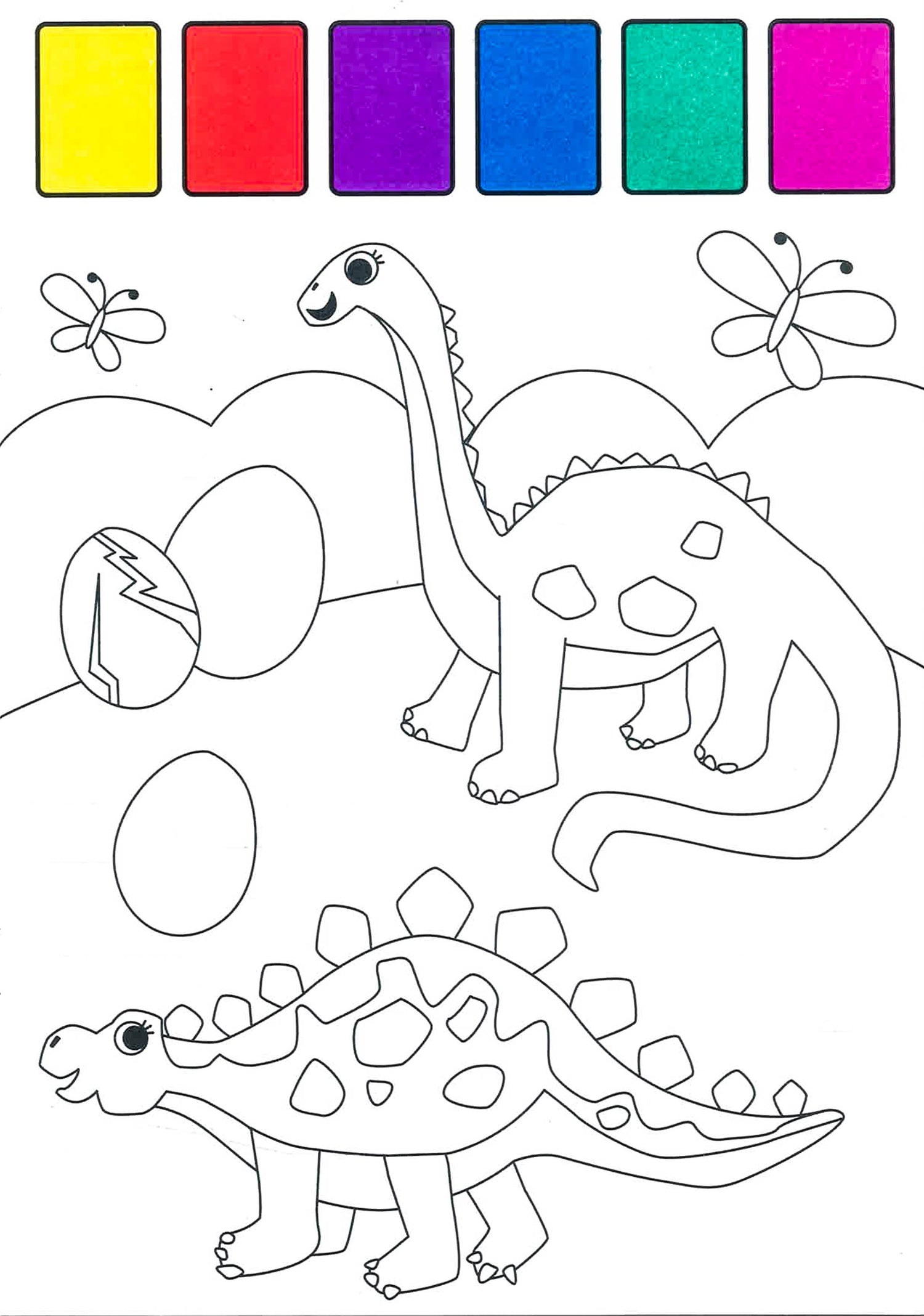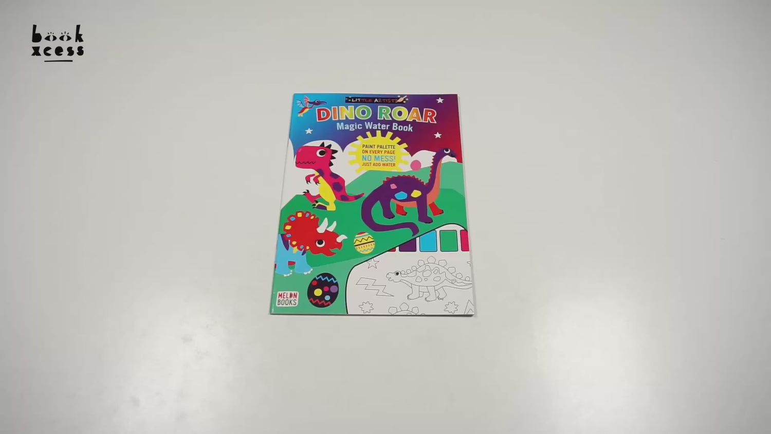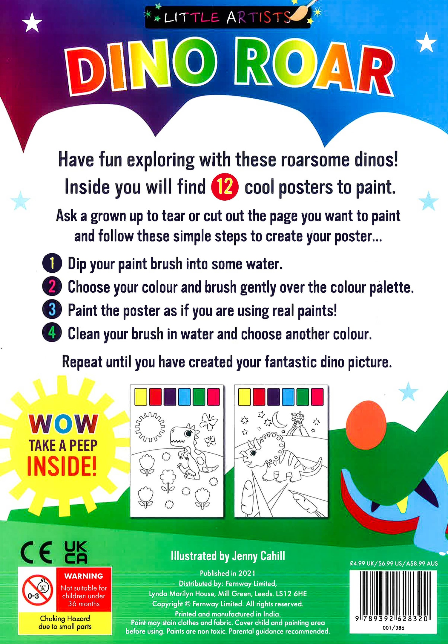 Have fun exploring with these roarsome dinos Inside you will find 12 cool posters to paint. Paint Palette on every page no mess Just add water