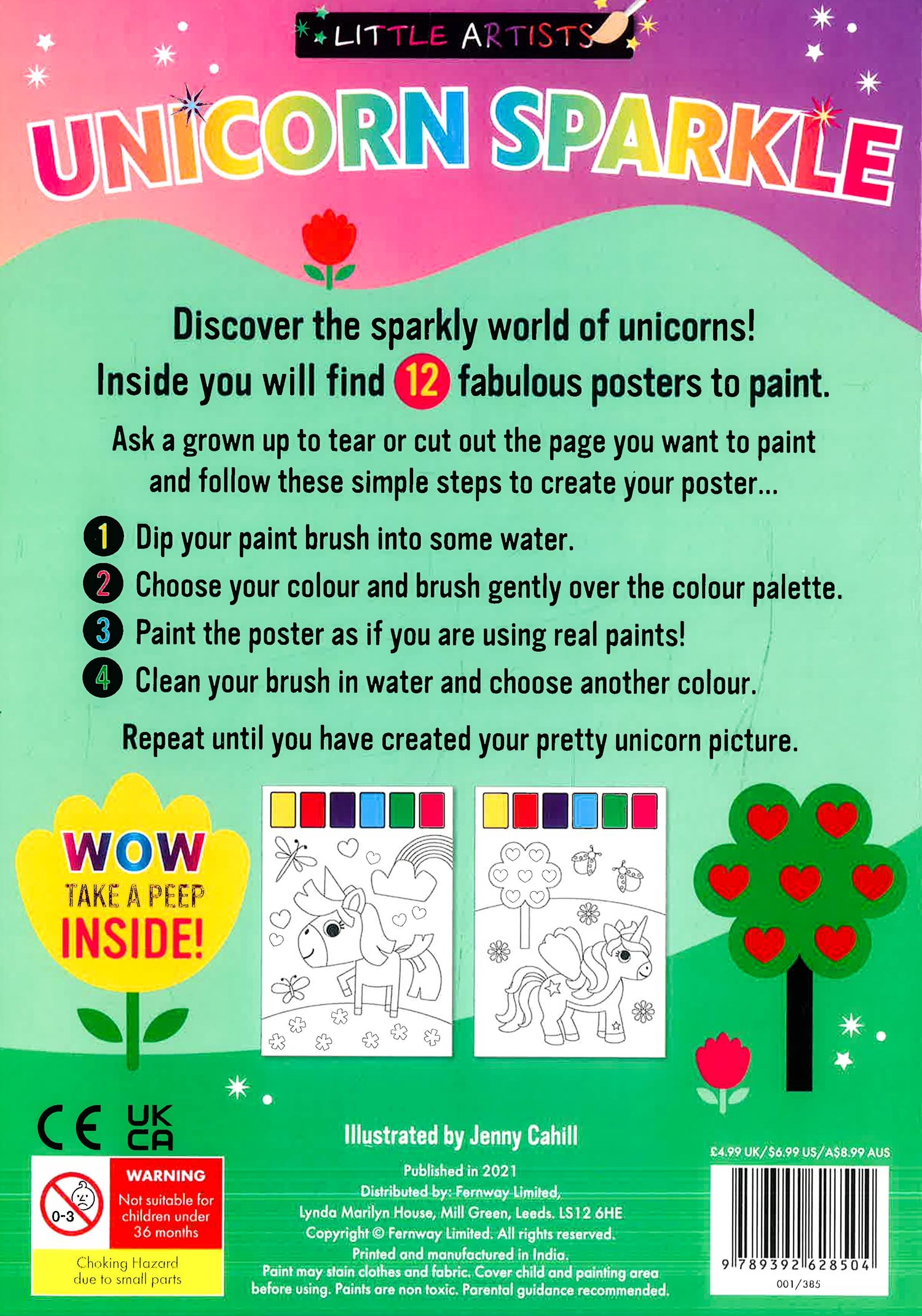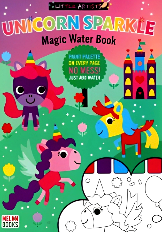 Discover the sparkly world of unicorns Inside you will find 12 fab posters to paint. Paint Palette on every page no mess Just add water