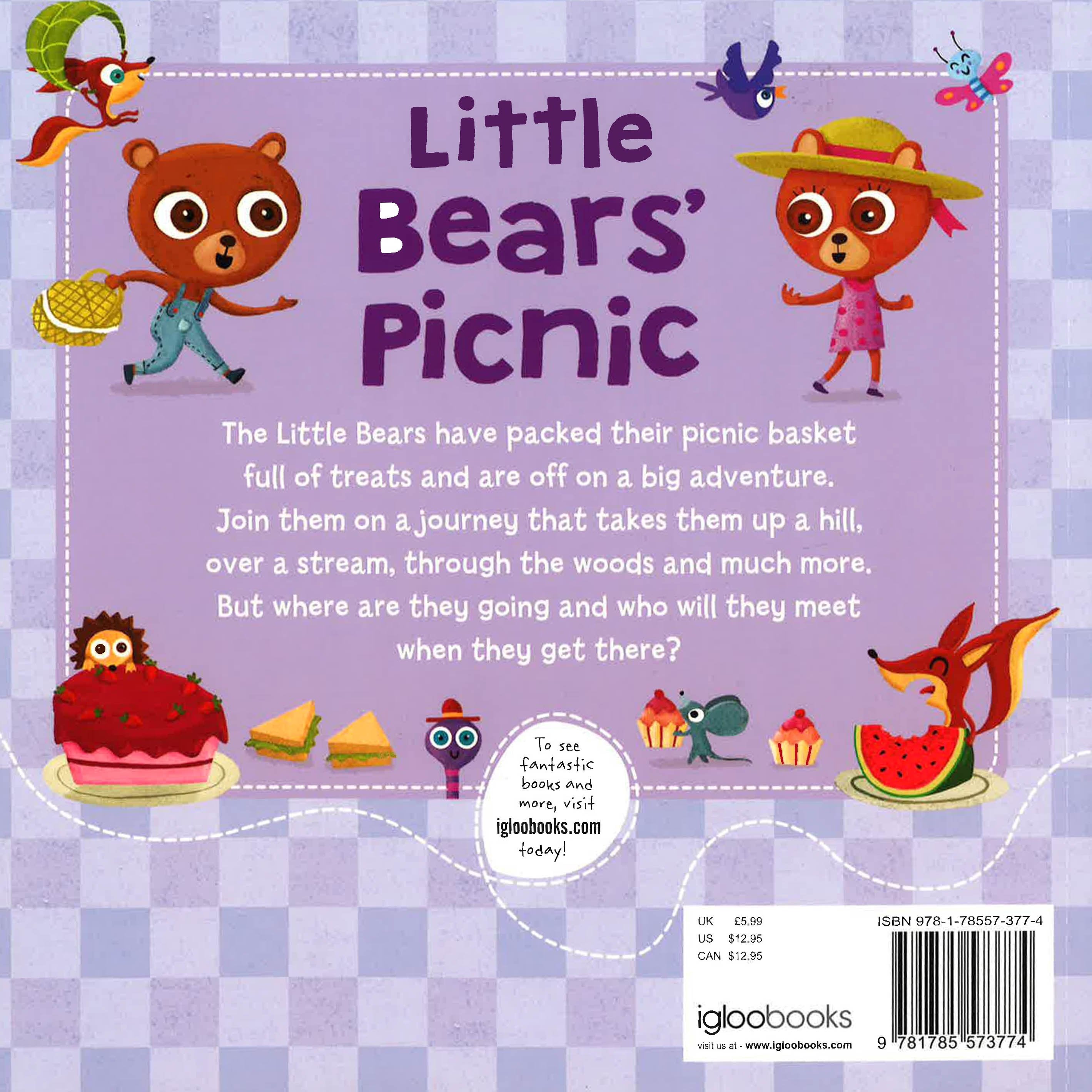 The little Bears have packed their picnic basket full of treats and are off on a big adventure. Join them on a journey that takes them up a hill, over a stream, through the woods and much more. But where are they going and who will they meet when they get there?