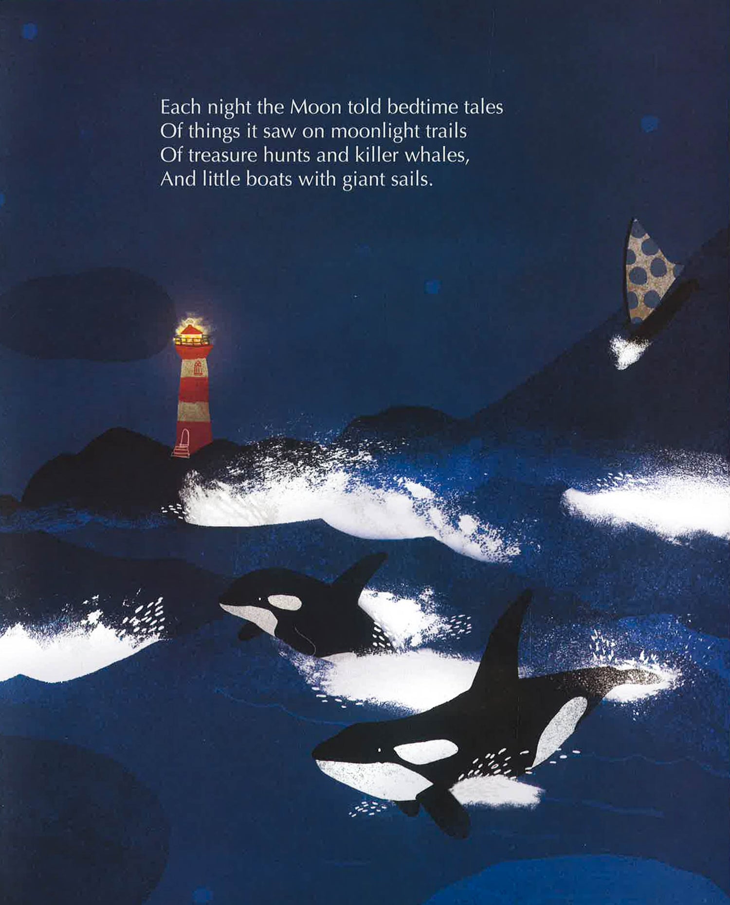 Little Bell loves the Moon and the Moon loves Little Bell. Every night the Moon takes Little Bell's hand and together they cross the oceans and the mountains on their adventures.