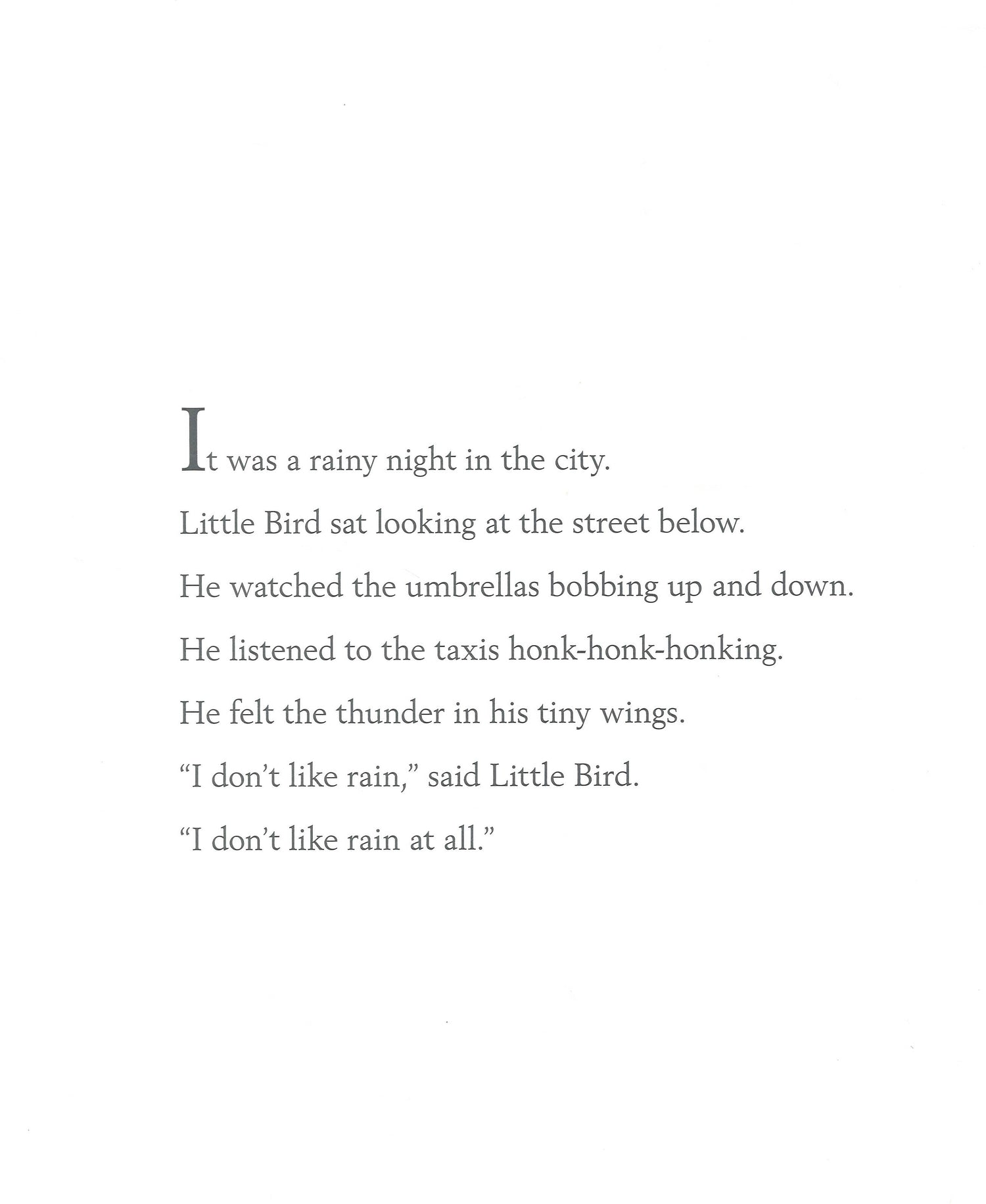 In this sweet read-aloud, a little bird in the big city searches for the perfect puddle. Fans of "Goldilocks and the Three Bears" will enjoy Little Bird's search for a just-right puddle after a rainstorm. He searches far and wide, but some puddles are too big, some are too small, and some are already crowded with bathers.