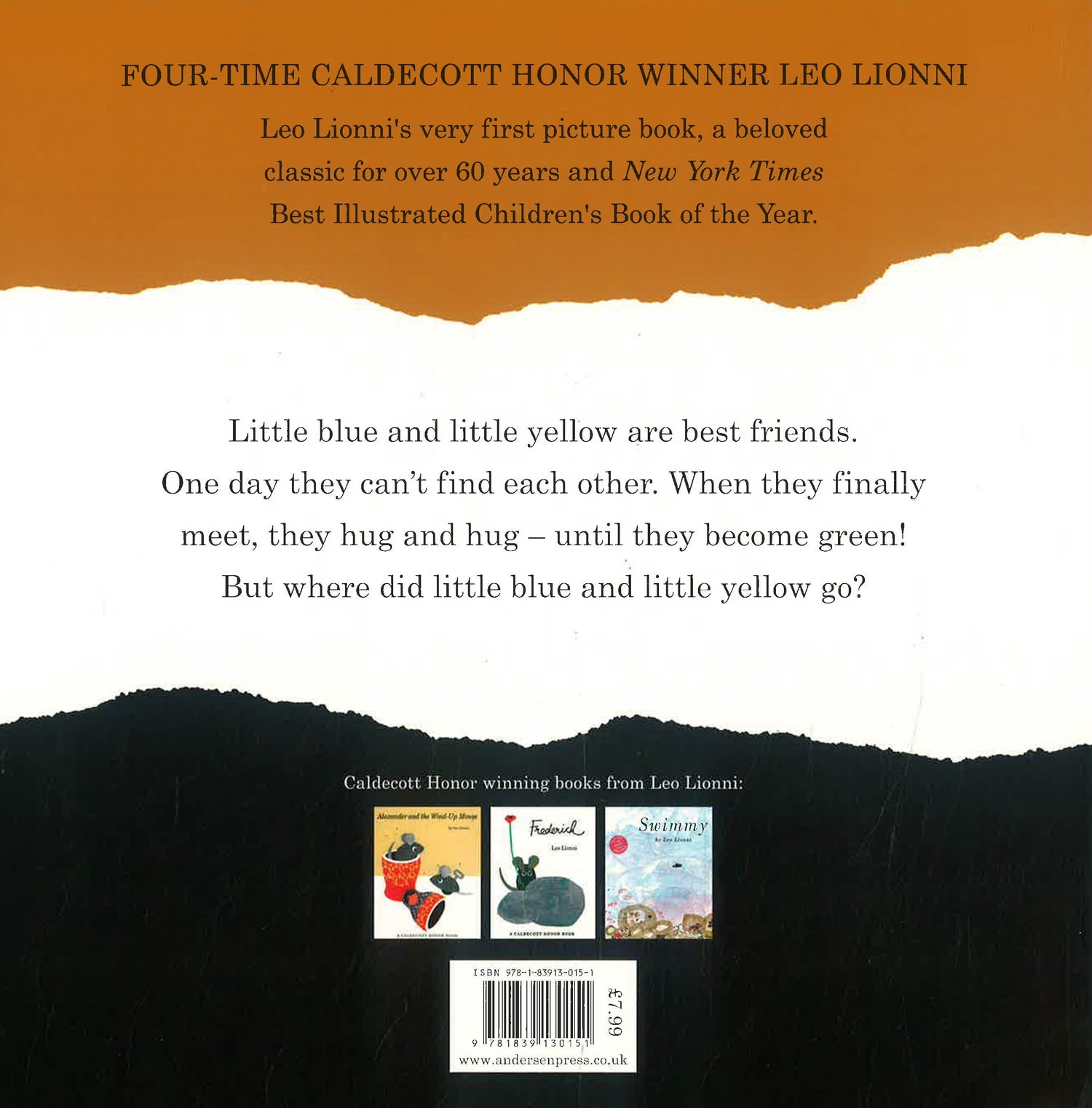 Little Blue and Little Yellow are best friends, but one day they can’t find each other. When they finally do, they give each other such a big hug that they turn green! With very few words and the power of a few scraps of coloured paper, this is a story of acceptance and friendship - and a fantastic first introduction to colour-blending abstract art. A true classic from four-time Caldecott Honor winner Leo Lionni first published in 1959 with a message that will resonate with children today as strongly as it did then.