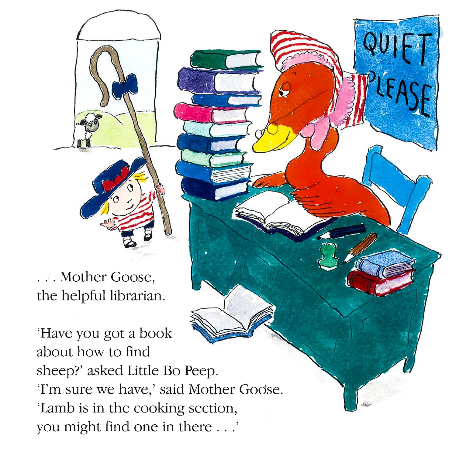 Little Bo Peep goes to the library to look for a book called How To Find Sheep. But there are other characters browsing the shelves too! Will she find those troublesome sheep before the Big Bad Wolf finds HER?