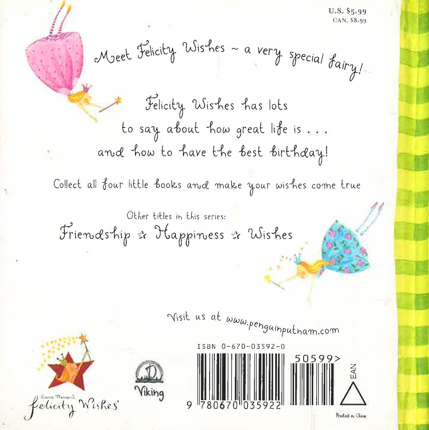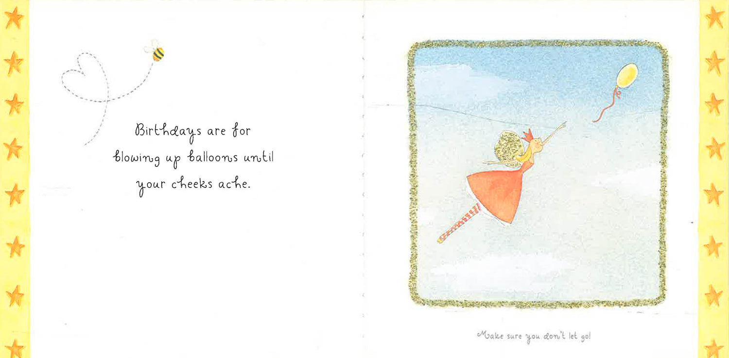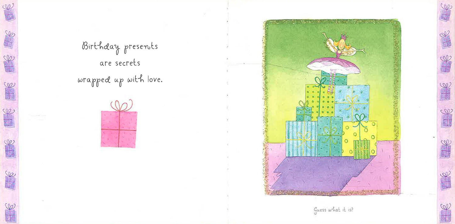 This captivating mini-book is filled with thoughts on happiness. Felicity Wishes is a magical fairy who can make dreams come true with a sparkly wave of her fairy wand. Featuring die-cut covers and pages with gold glitter, these mini-books will be favorites of fairy fans of all ages.