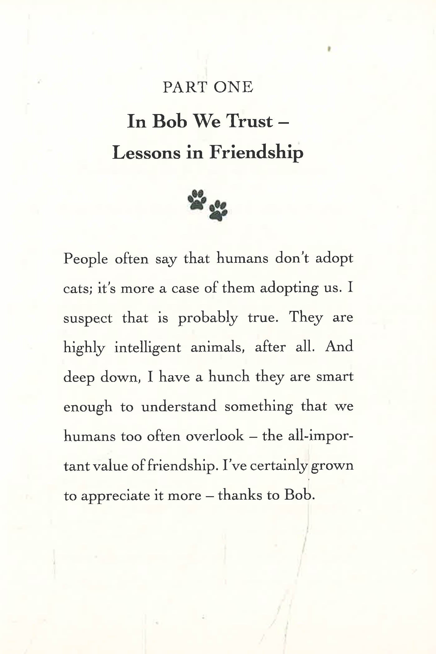 In spring of 2007, street busker James Bowen found an injured orange tabby in the hallway of his shelter home in North London. Their friendship changed both of their lives and led to the internationally bestselling book A Street Cat Named Bob.