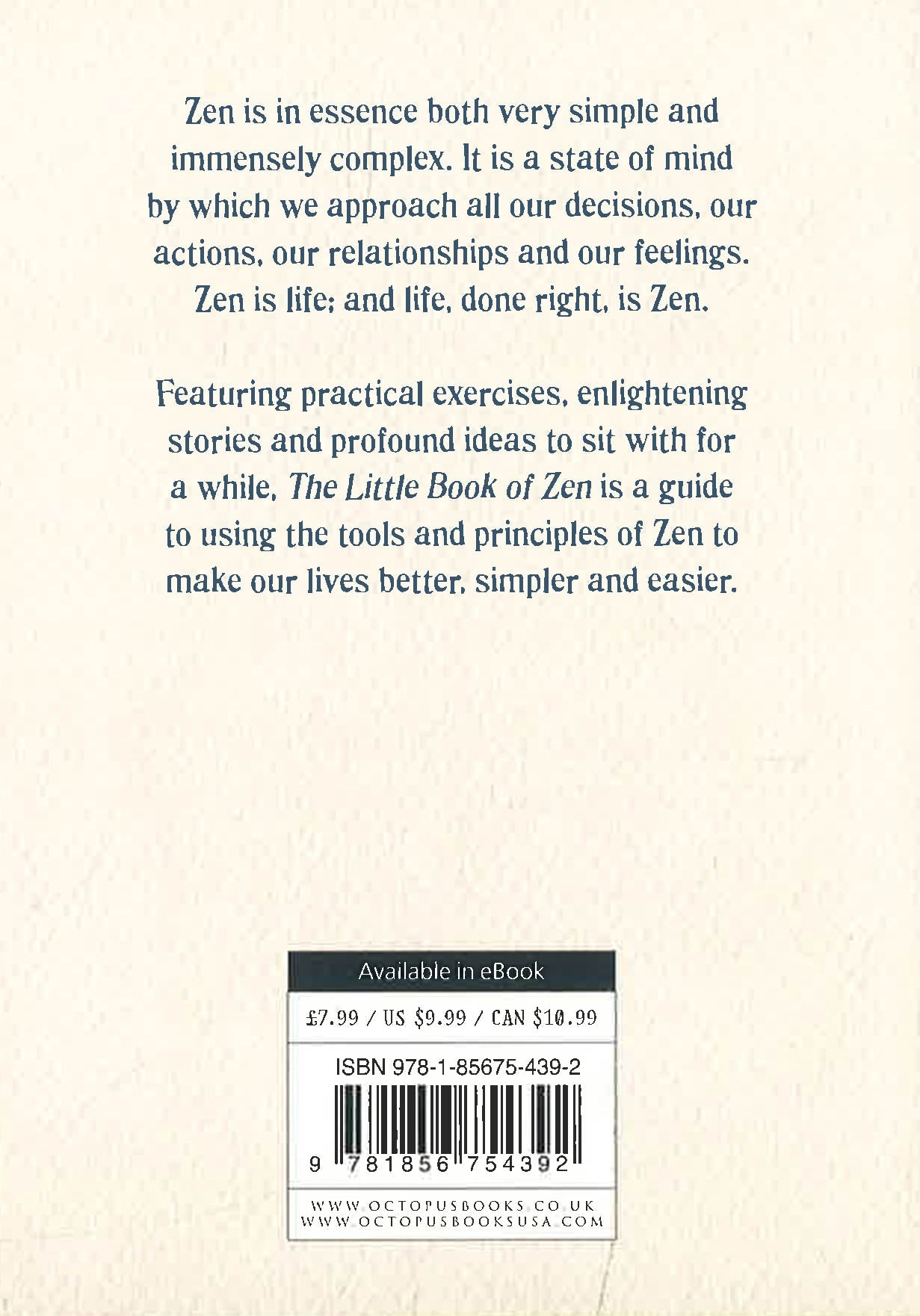 Who knew so much wisdom could come in such a small package? This little book is packed full of easy practices and meditations to help you introduce the principles of Zen Buddhism into your day-to-day: enhance your spiritual, physical and mental wellbeing, tune into your natural intuition, and find your inner calm.