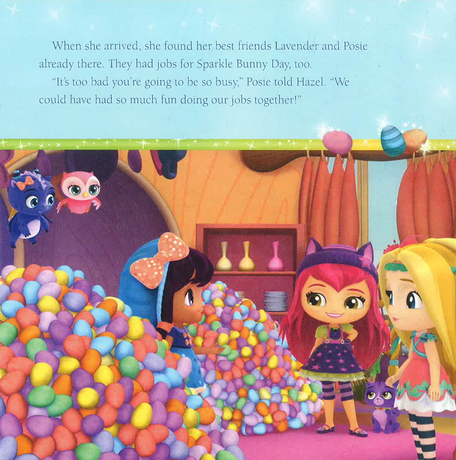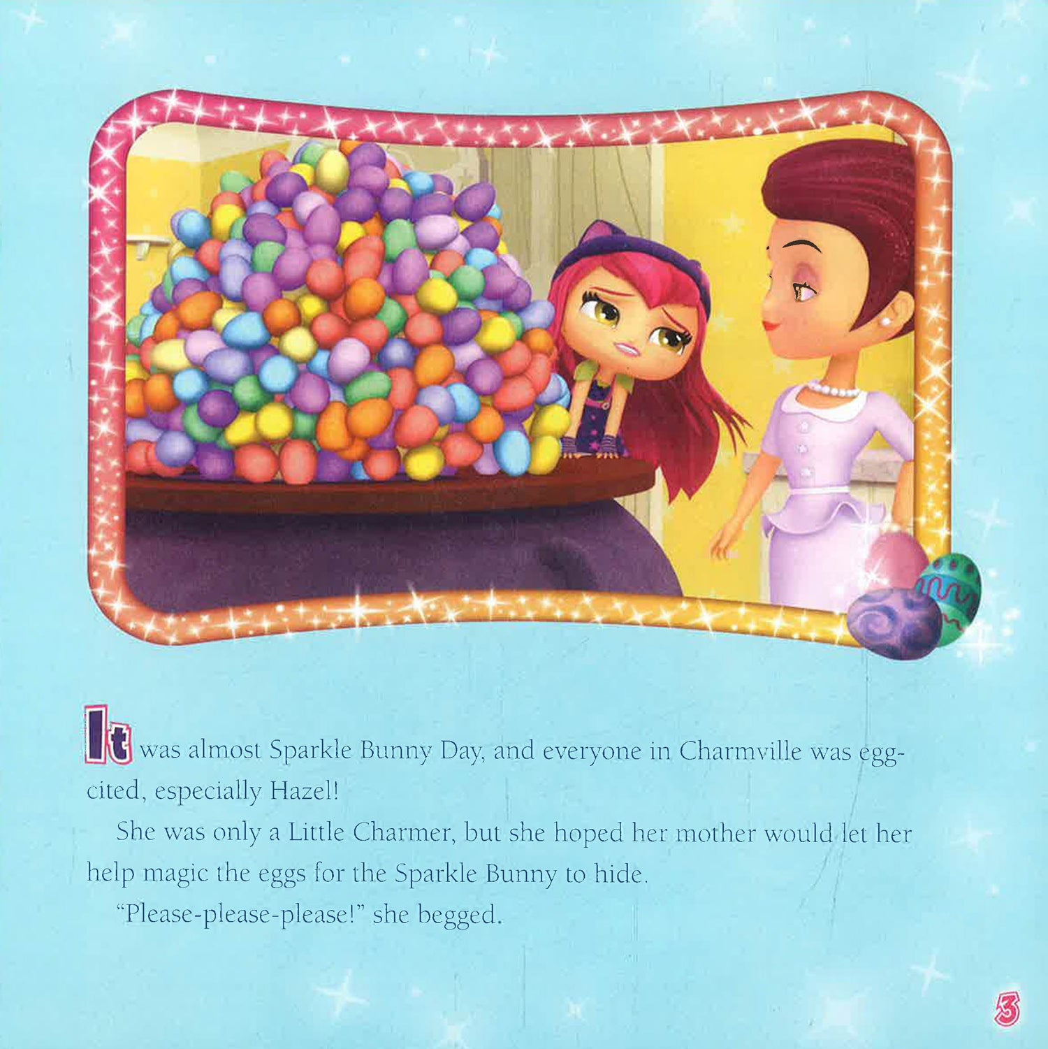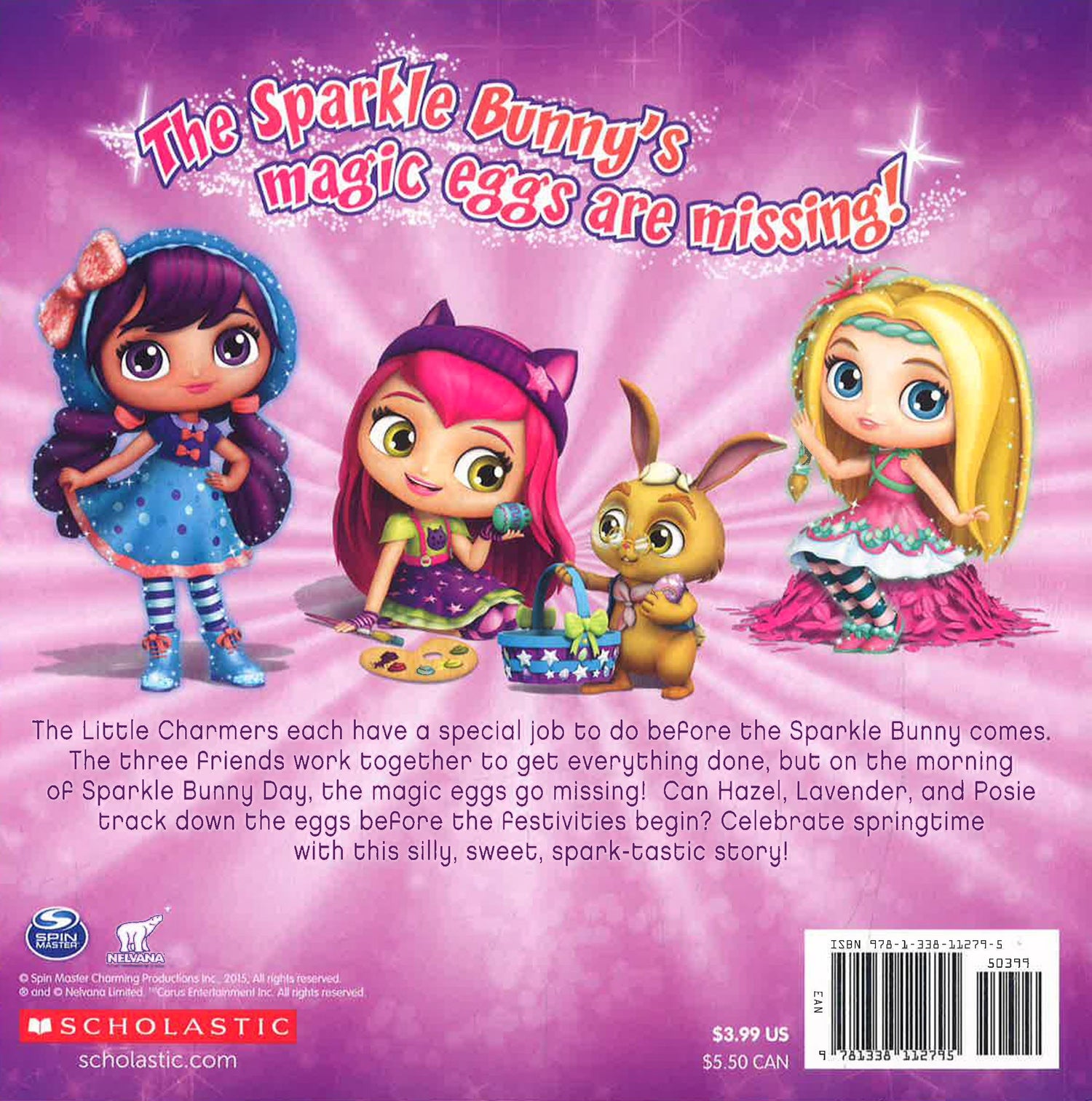 It's almost Sparkle Bunny Day and the Little Charmers each have a special job to do before the Sparkle Bunny comes. The three friends work together to get everything done, but on the morning of Sparkle Bunny Day, the magic eggs go missing! Can Hazel, Lavender, and Posie track down the eggs before the festivities begin? Celebrate springtime with this silly, sweet, spark-tastic story!