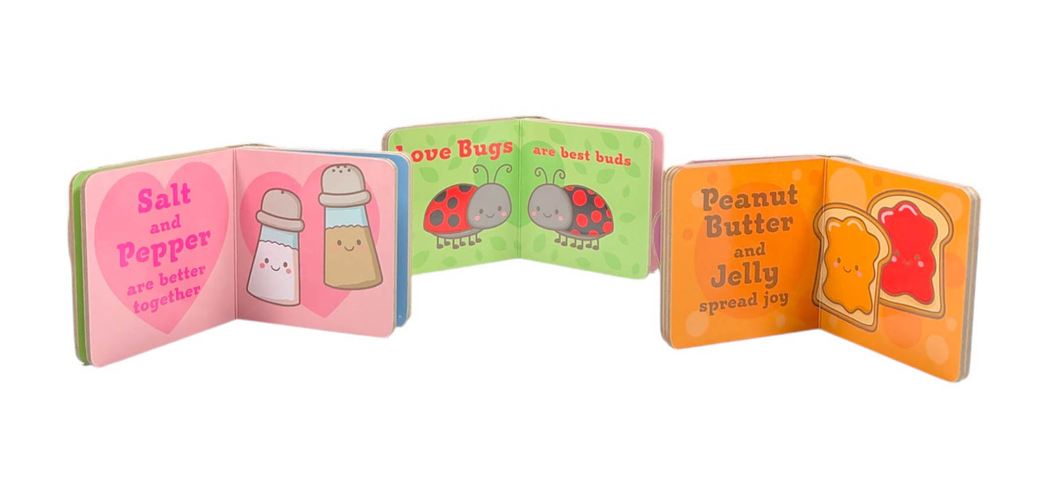 This set includes three loveable shaped board books filled with unique Kawaii-style illustrations. Each chunky book focuses on different best-friend pairings, from Cookie and Milk to Peanut Butter and Jelly, and more! This compact, shrink-wrapped pack of board books is an ideal gift to share with loved ones at Valentine's.