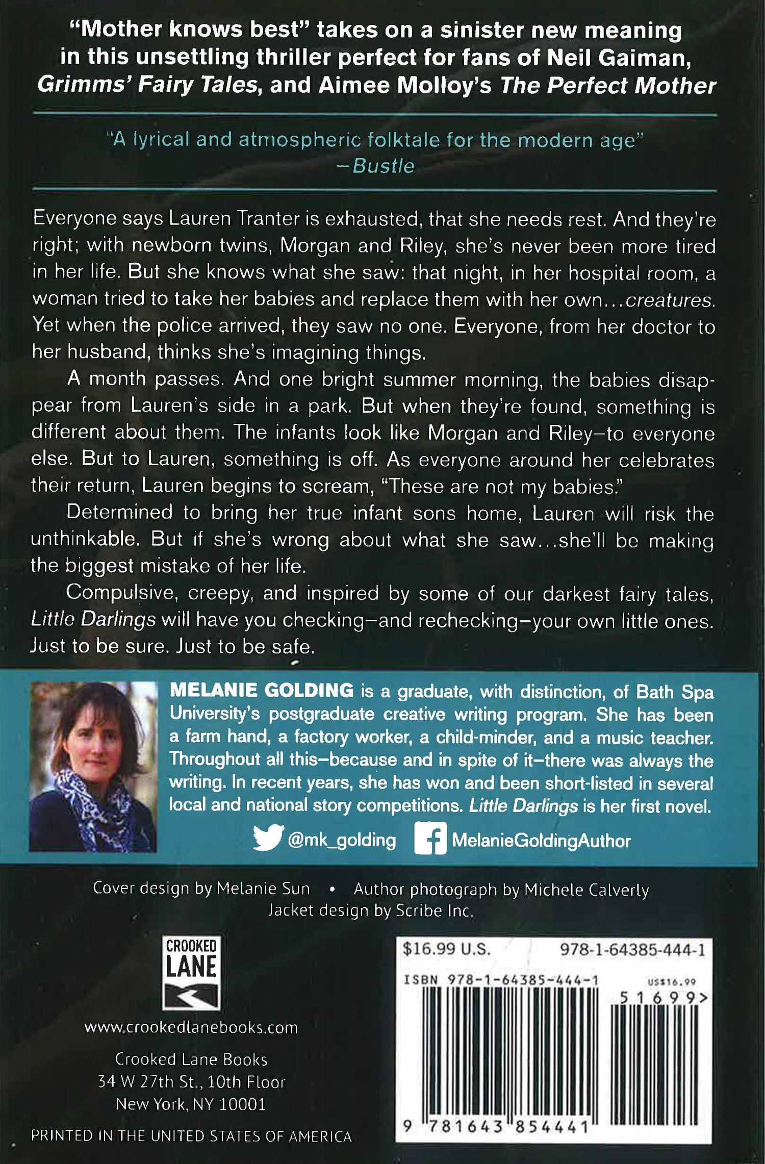 Compulsive, creepy, and inspired by some of our darkest fairy tales, Little Darlings will have you checking--and rechecking--your own little ones. Just to be sure. Just to be safe.