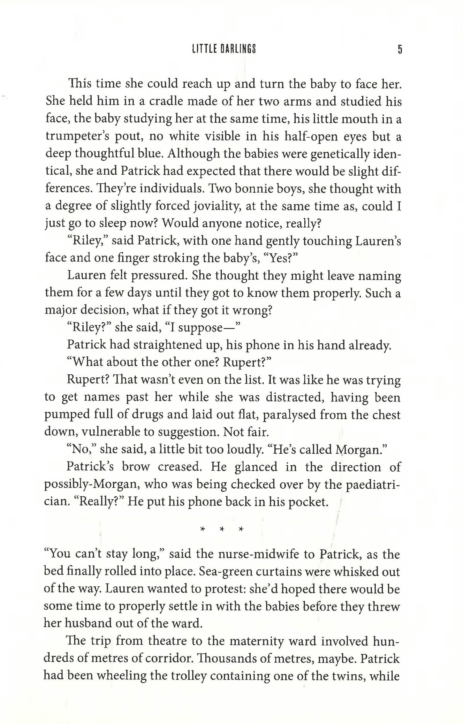 Everyone says Lauren Tranter is exhausted, that she needs rest. And they're right; with newborn twins, Morgan and Riley, she's never been more tired in her life. But she knows what she saw: that night, in her hospital room, a woman tried to take her babies and replace them with her own...creatures. Yet when the police arrived, they saw no one. Everyone, from her doctor to her husband, thinks she's imagining things.
