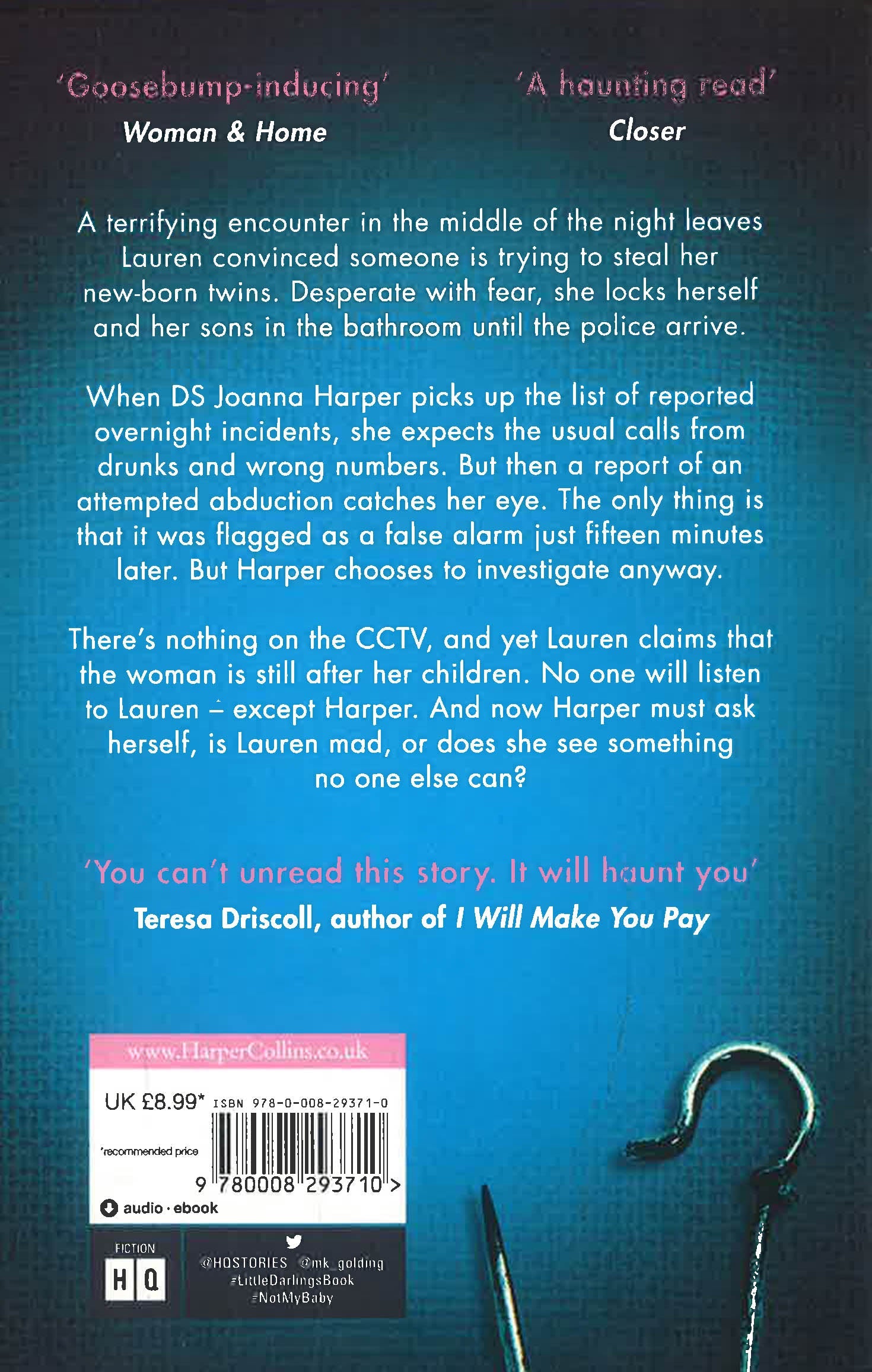 When DS Joanna Harper picks up the list of reported overnight incidents, she expects the usual calls from drunks and wrong numbers. But then a report of an attempted abduction catches her eye. The only thing is that it was flagged as a false alarm just fifteen minutes later. But Harper chooses to investigate anyway.