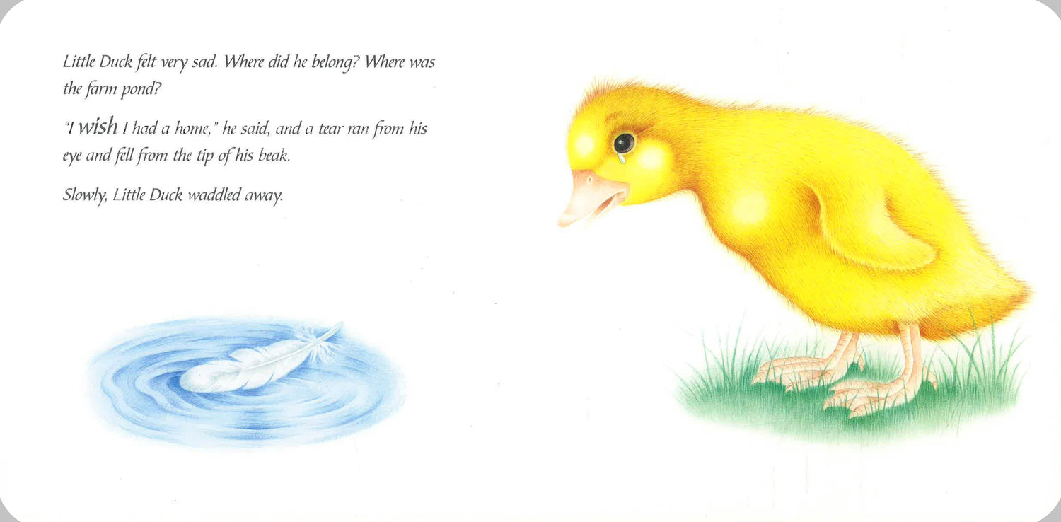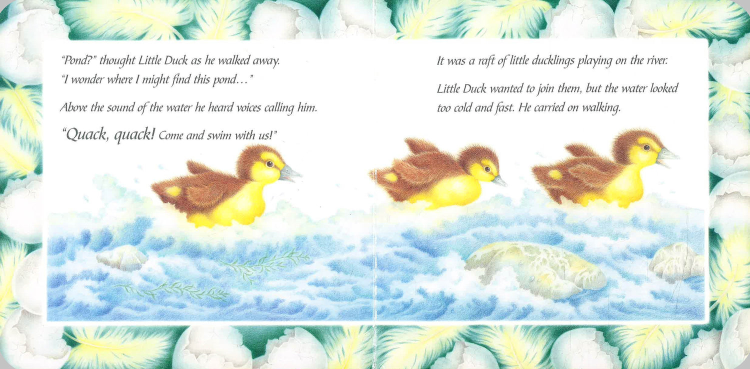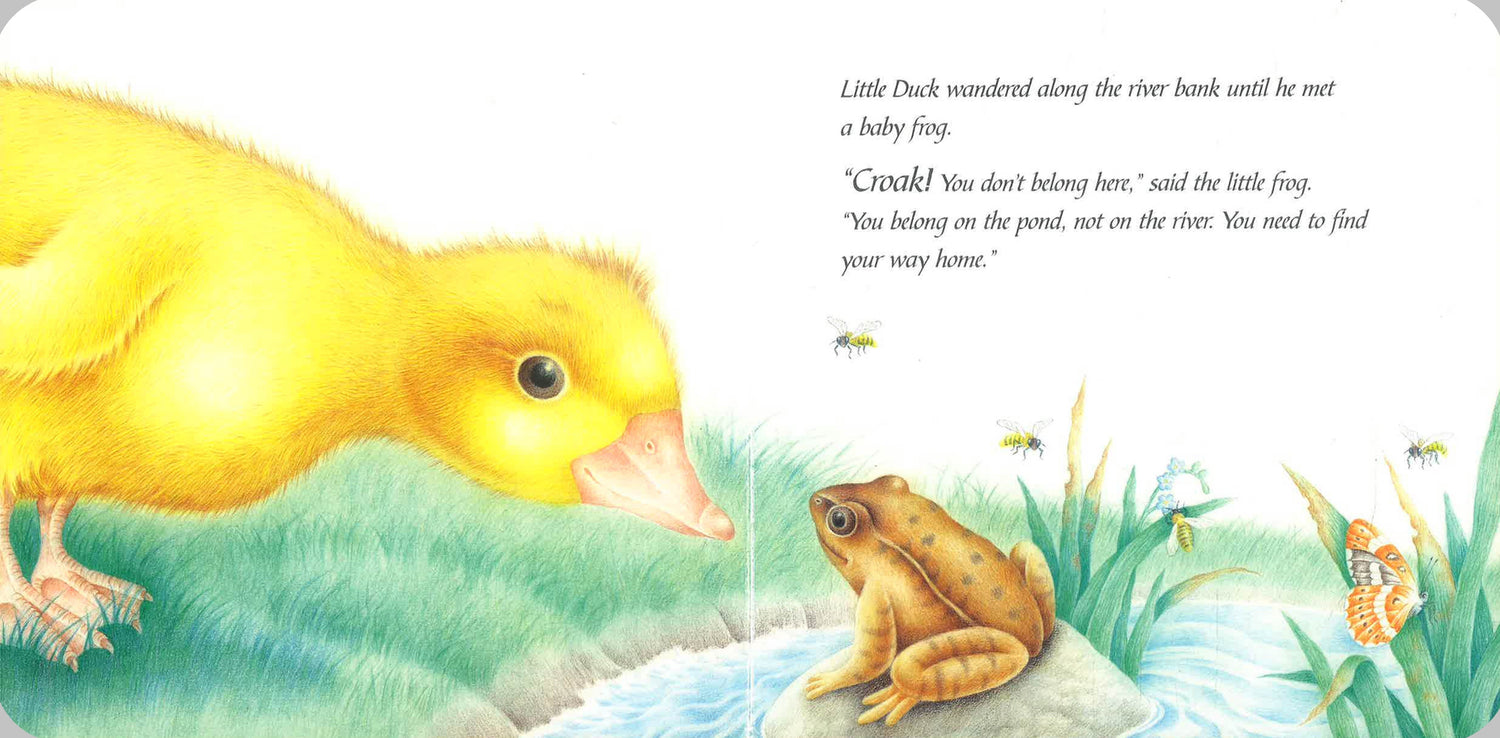 When Little Duck hatches out of his egg on the riverbank, there is no one around at all. He sets off to look for a friend, but will he find out where he truly belongs?