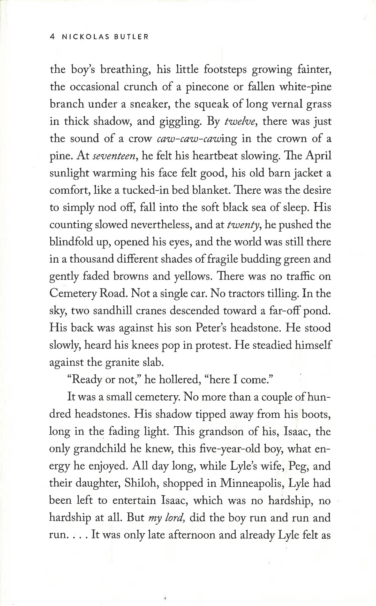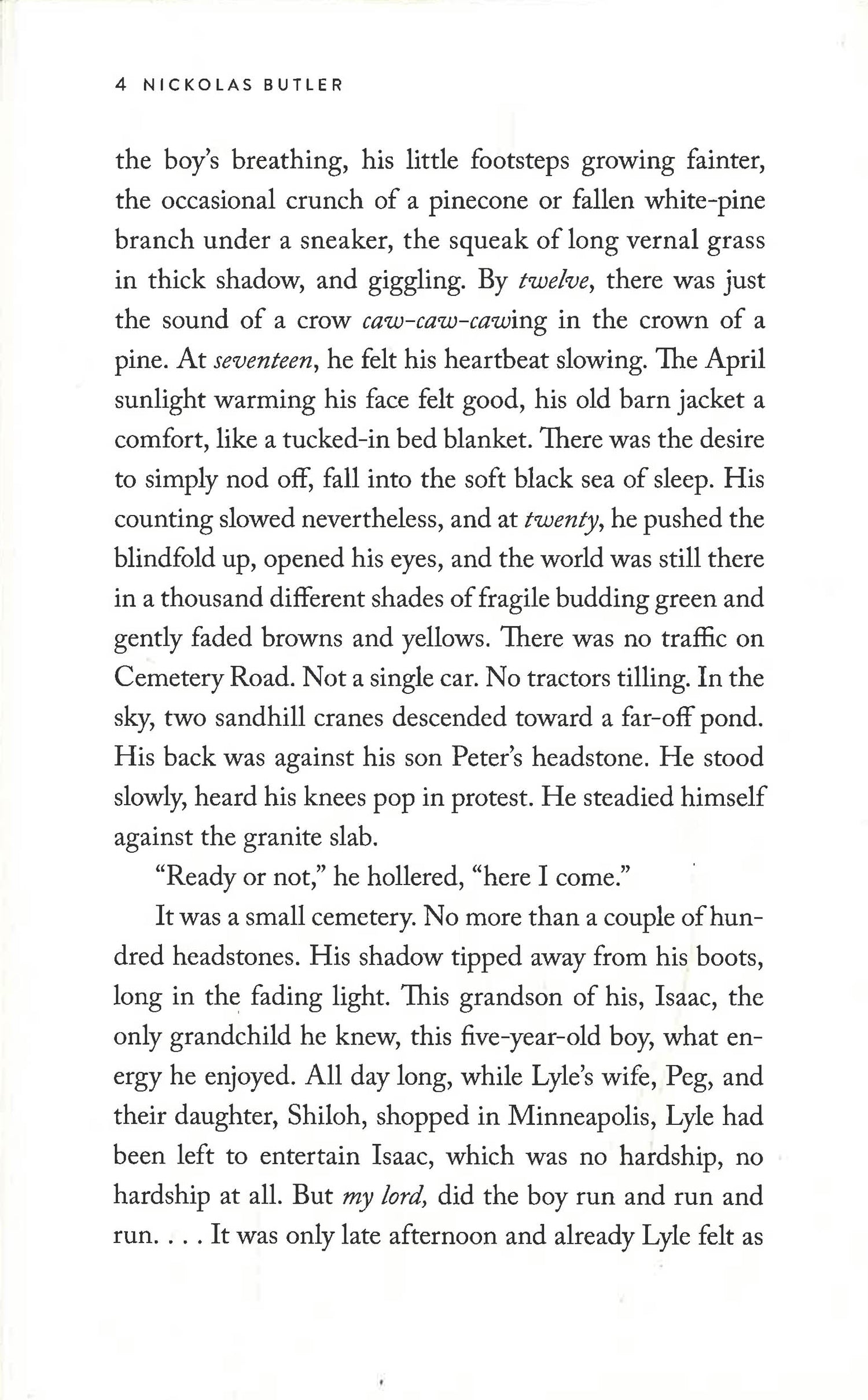 Lyle Hovde is at the onset of his golden years, living a mostly content life in rural Wisconsin with his wife, Peg, daughter, Shiloh, and five-year-old grandson, Isaac. After a troubled adolescence and subsequent estrangement from her parents, Shiloh has finally come home. But, while away, she became deeply involved with an extremist church, and the devout pastor courting her is convinced Isaac has the spiritual ability to heal the sick.