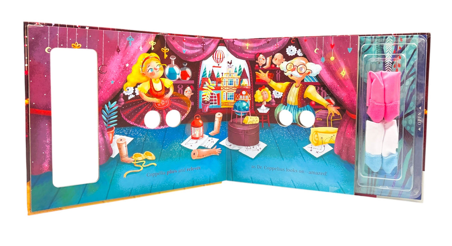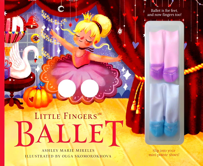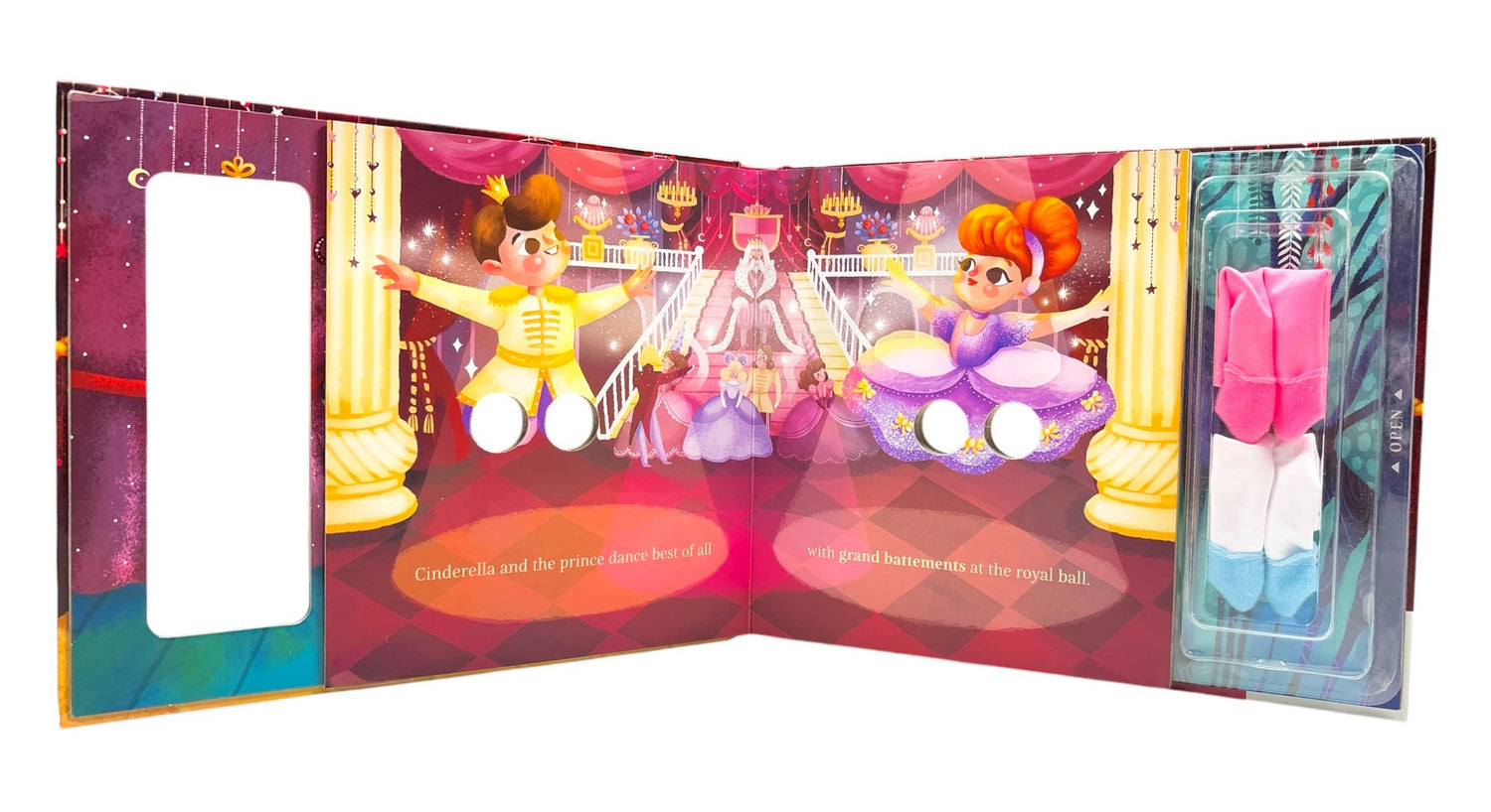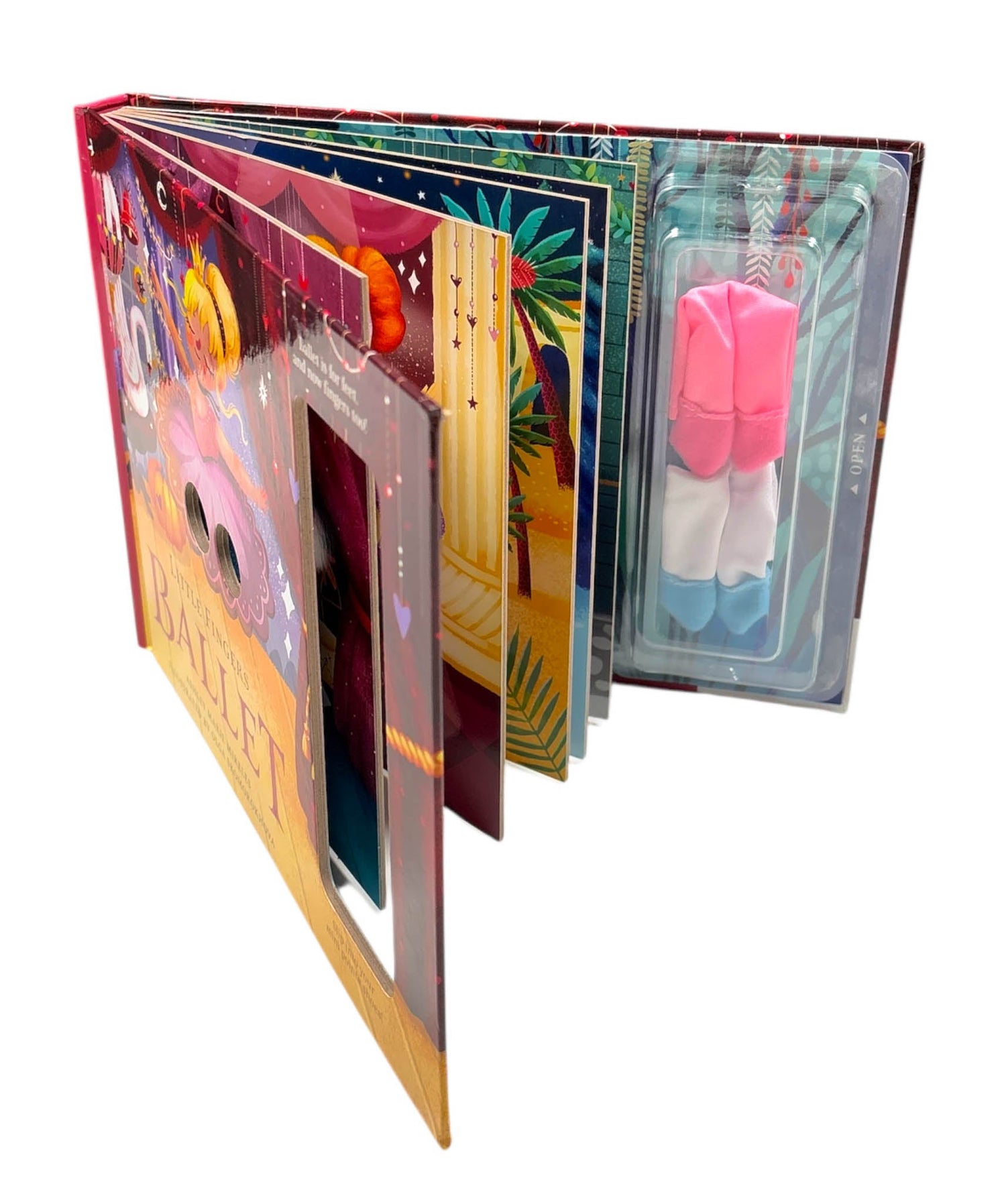 Being a prima ballerina is simple with Little Fingers Ballet! Flip through the pages and become the star of classic ballets. The six spreads feature scenes from Coppellia, Cinderella, La Bayadere, The Nutcracker, Romeo & Juliet, and Swan Lake. Each page gives the reader a ballet step to practice from the actual choreography of the scene.