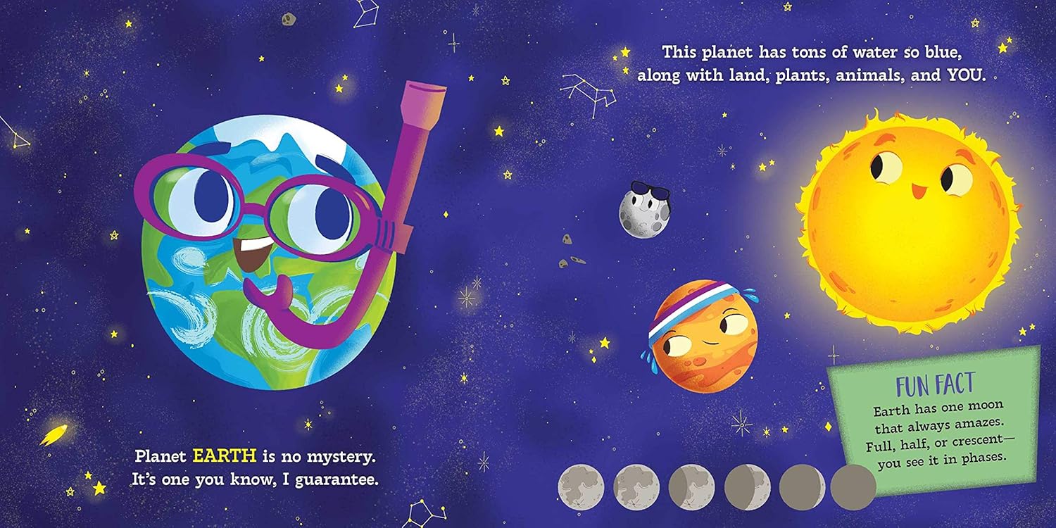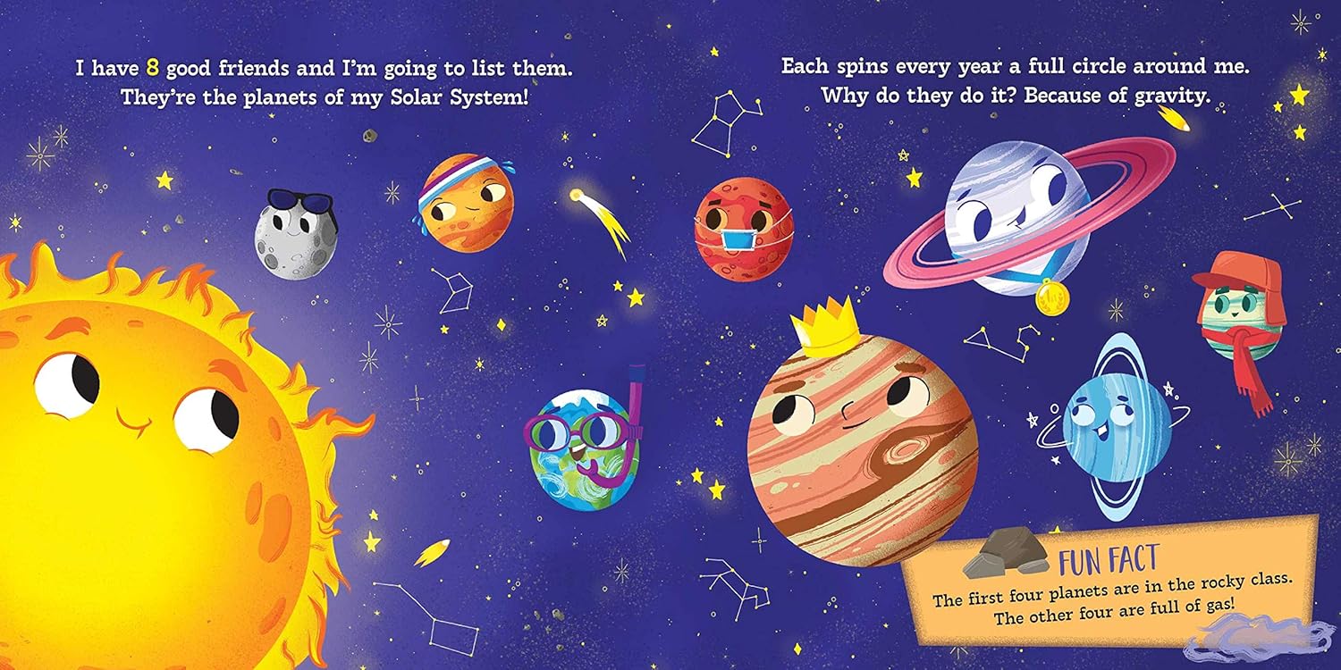 With super-simple concepts about the sun, planets, comets, and more, each spread features the wonderful illustrations of Mattia Cerato along with rhyming text that delights while it instructs. With the sun as your guide, meet Mercury, Venus, Earth, and the rest of the planet gang, as you travel further and further to the outer reaches of the solar system. Each planet has one funny identifying feature that will help kids remember a fascinating fact about it. For instance, Earth is wearing goggles. Why? Because it has lots and lots of water! Little Genius Solar System reads like a fun story, making it the perfect introduction to our night sky.