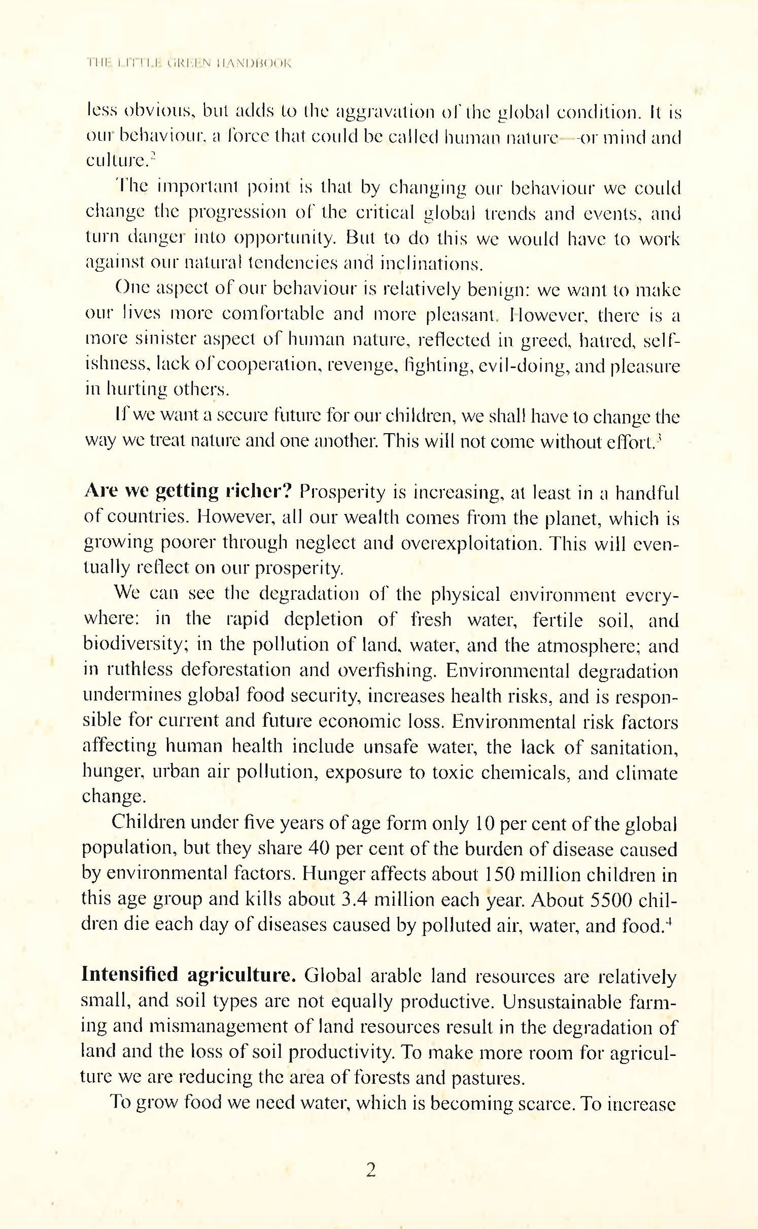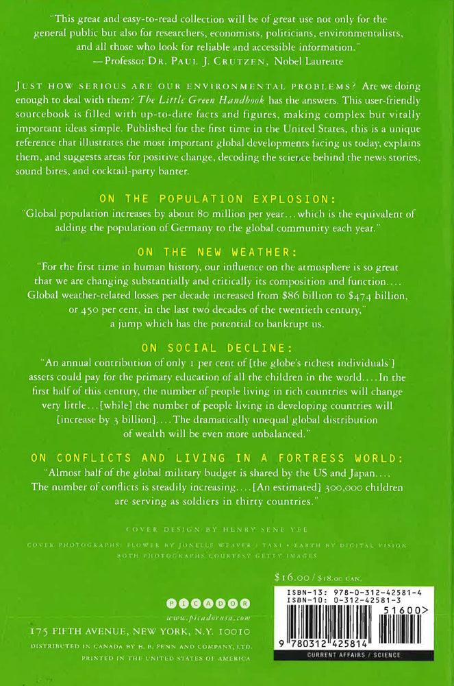 Just how serious are our environmental problems? Are we doing enough to deal with them? The Little Green Handbook has the answers. This user-friendly sourcebook is filled with up-to-date facts and figures, making complex but vitally important ideas simple. Published for the first time in the United States, this is a unique reference that illustrates the most important global developments facing us today, explains them, and suggests areas for positive change, decoding the science behind the news stories, sound bites, and cocktail-party banter.