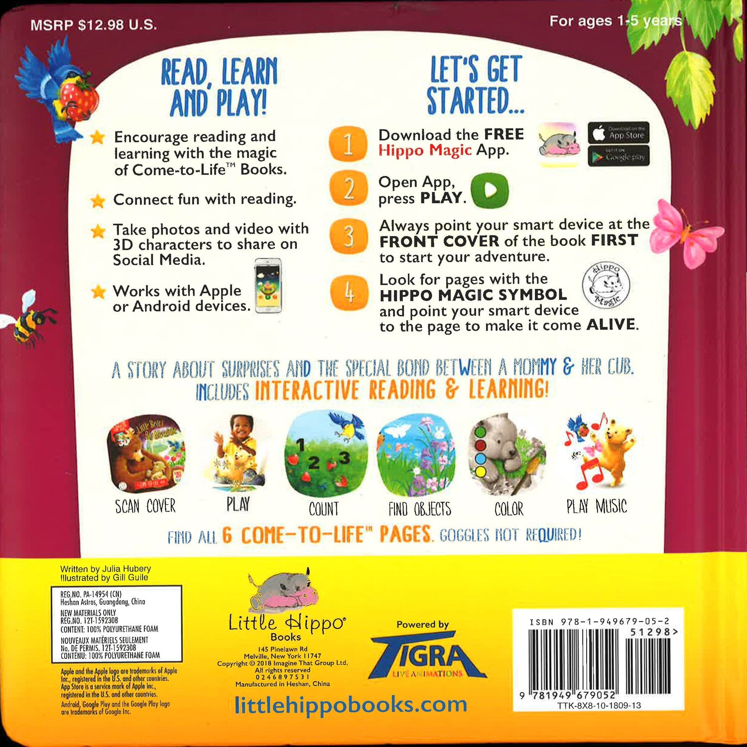 Little Hippo Augmented Reality "Magic Books" exist at the intersection of gaming and reading, technology and literacy, imagination and education. Each book comes with a free, downloadable app for mobile devices, the Hippo Magic App. Simply scan the pages of each book with a tablet or smartphone and watch the characters come to life in a 4D way!